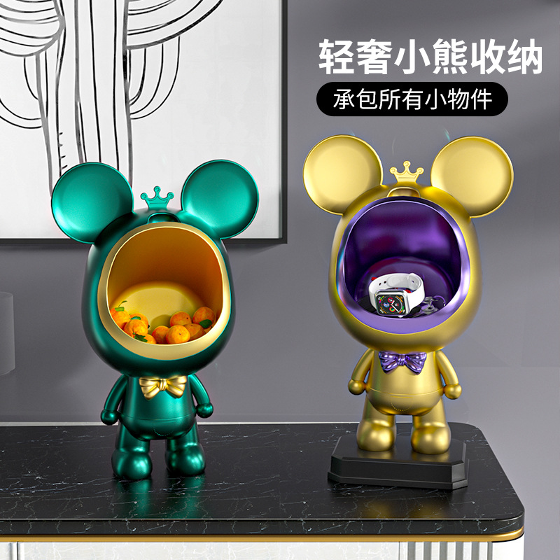 北欧轻奢小熊玄关钥匙收纳桌面摆件客厅家居储物装饰品置物架