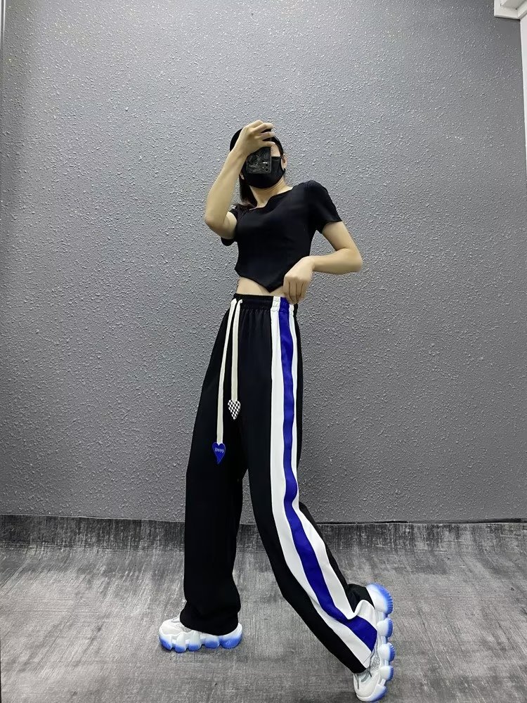 条纹休闲裤女 夏季薄款高腰宽松显瘦垂感直筒长裤阔腿裤子ins