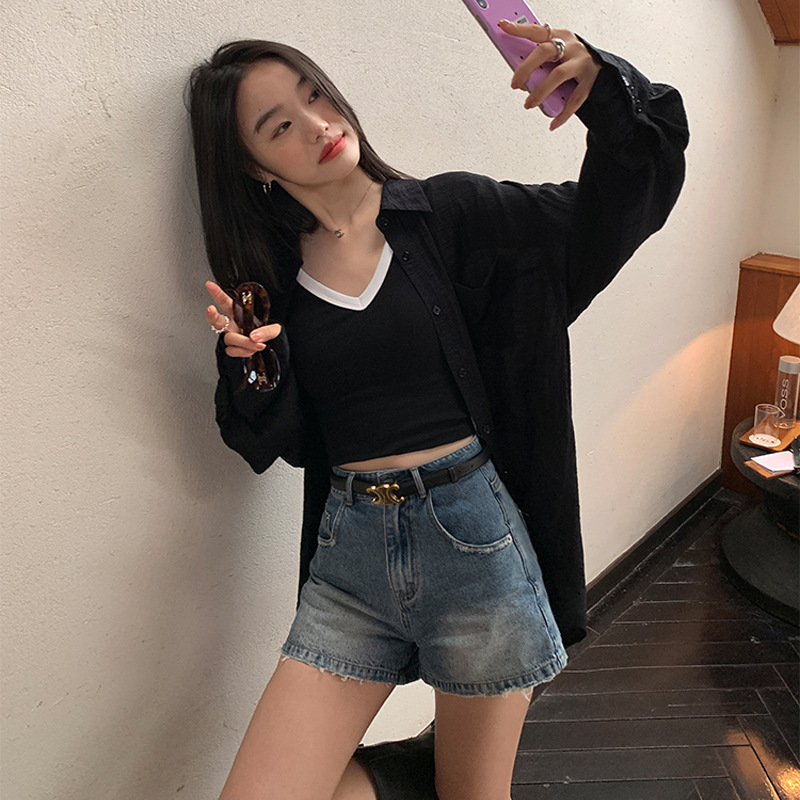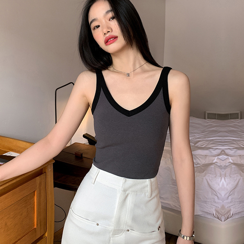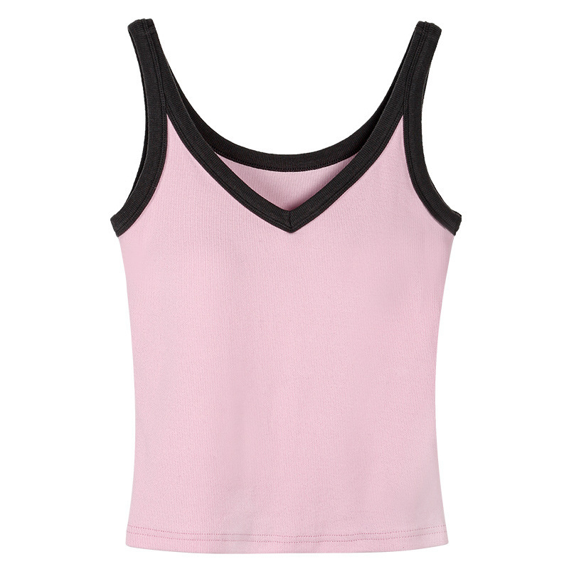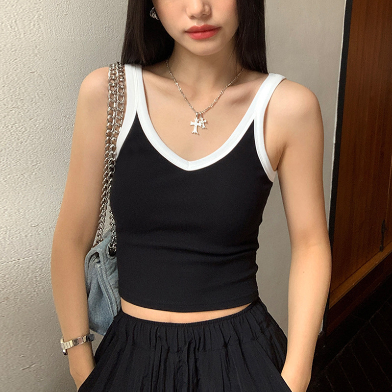 【价值高于价格】高腰短款吊带背心女外穿夏撞色v领无袖打底上衣