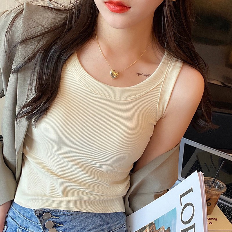 【价值高于价格】高腰短款螺纹棉背心女遮副乳防走光露脐打底吊带
