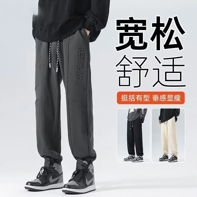 春夏新款小脚卫裤字母压花束脚休闲裤男生宽松抽绳运动裤