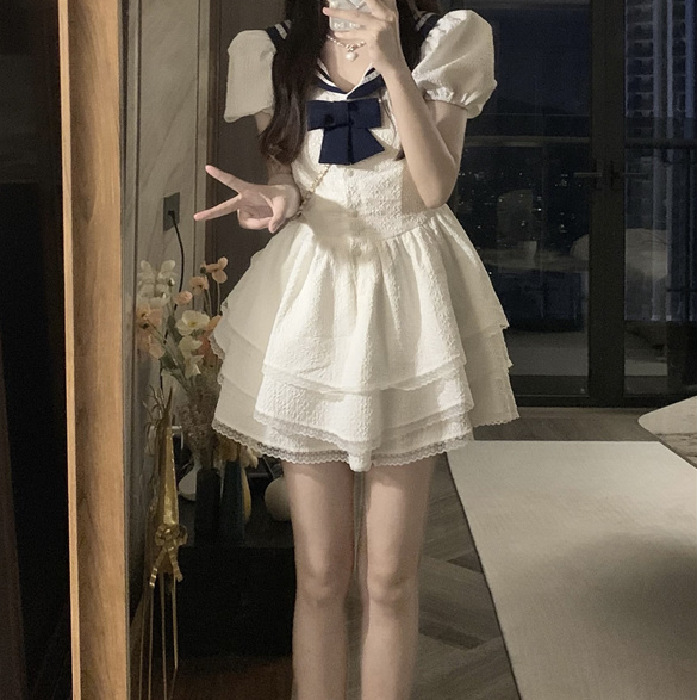 学院海军领小个子白色性感连衣裙女夏季蓬蓬公主裙纯欲风初恋短裙