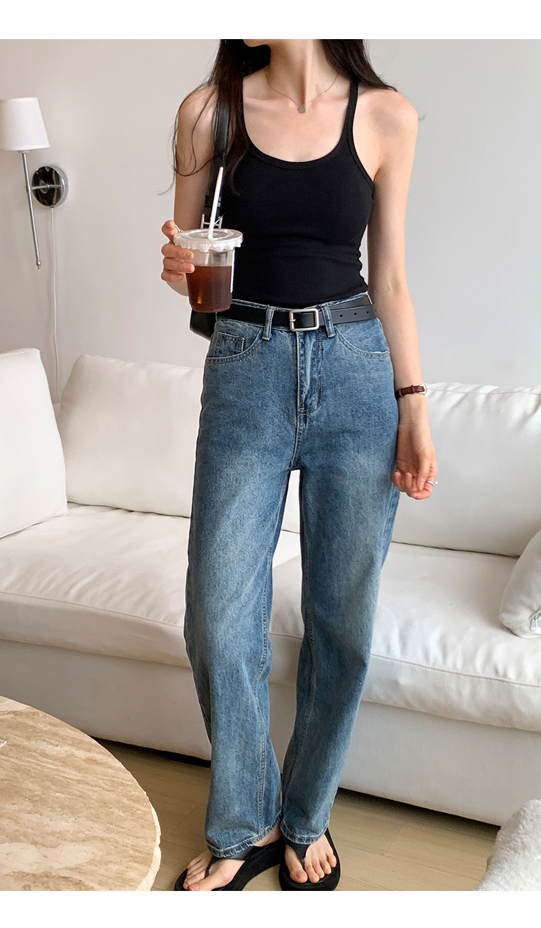 早秋直筒裤牛仔裤女弹力高腰显瘦时尚水洗复古蓝烟管裤修身百搭