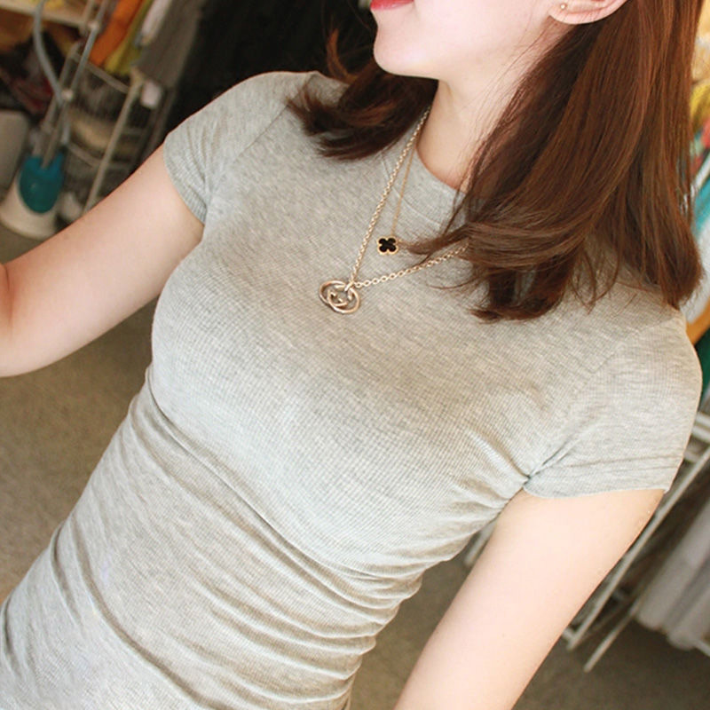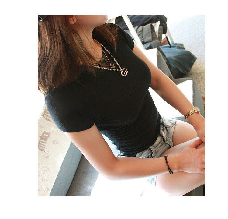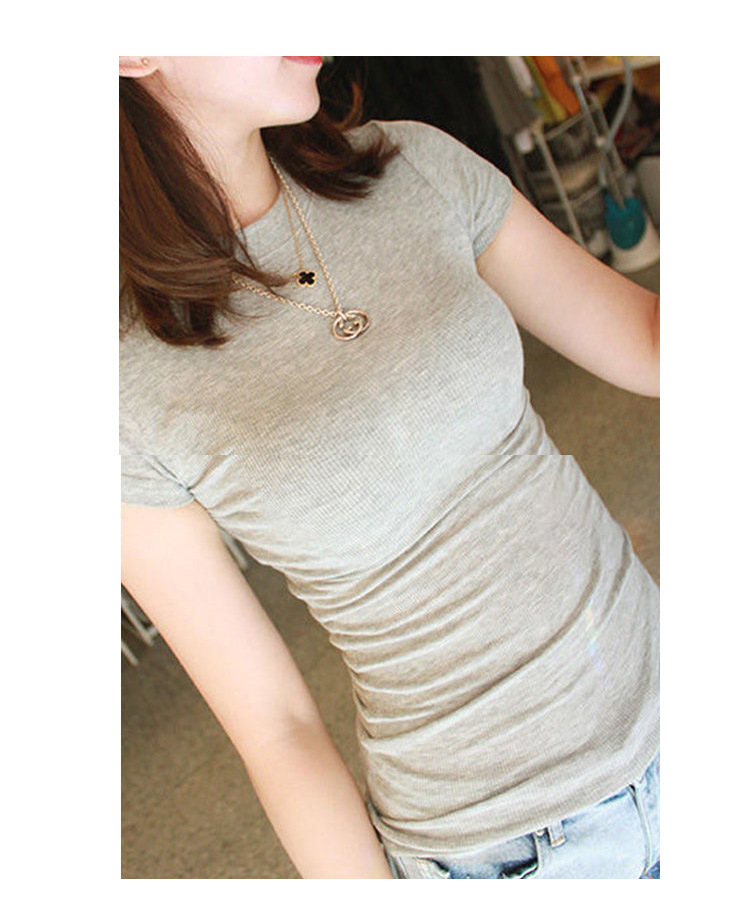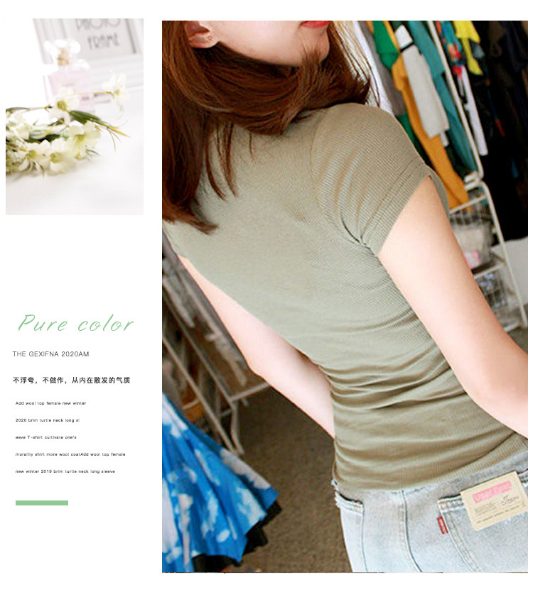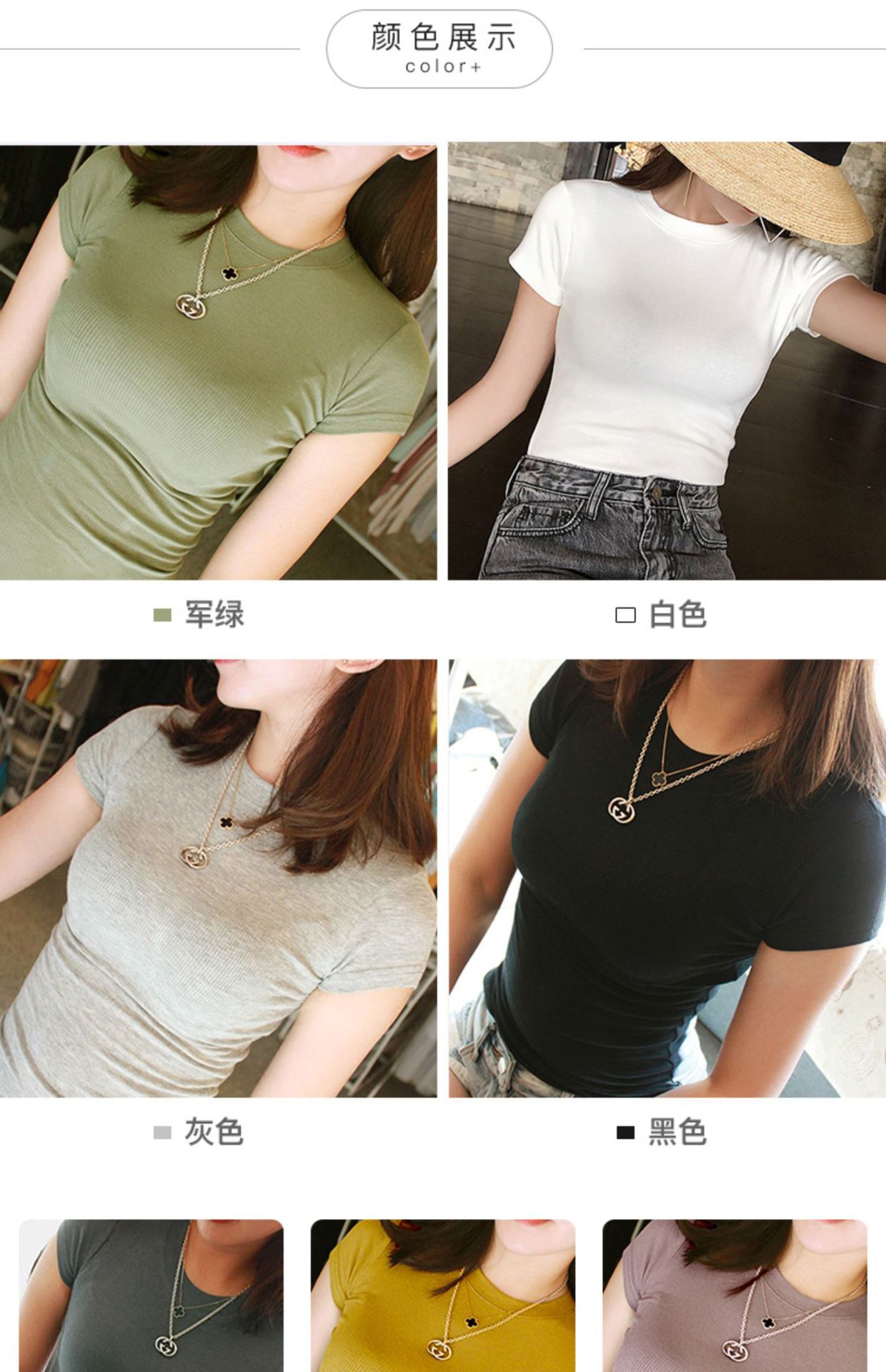 【价值高于价格】高弹螺纹百搭短袖t恤女夏季紧身显瘦打底衫上衣