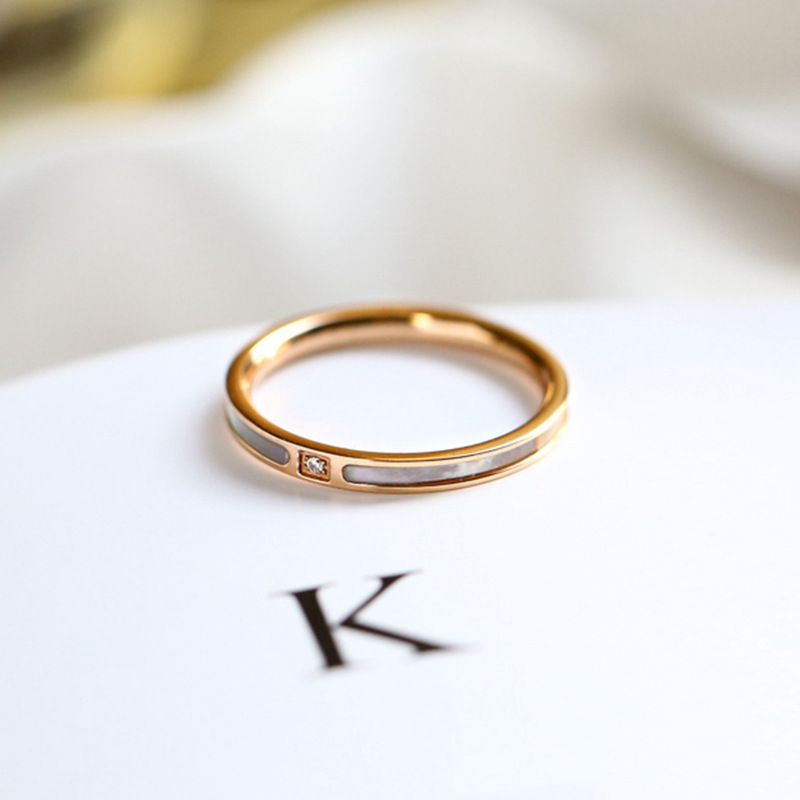 日韩新款时尚钛钢戒指女不掉色单钻白贝小众设计高级感ins冷淡风