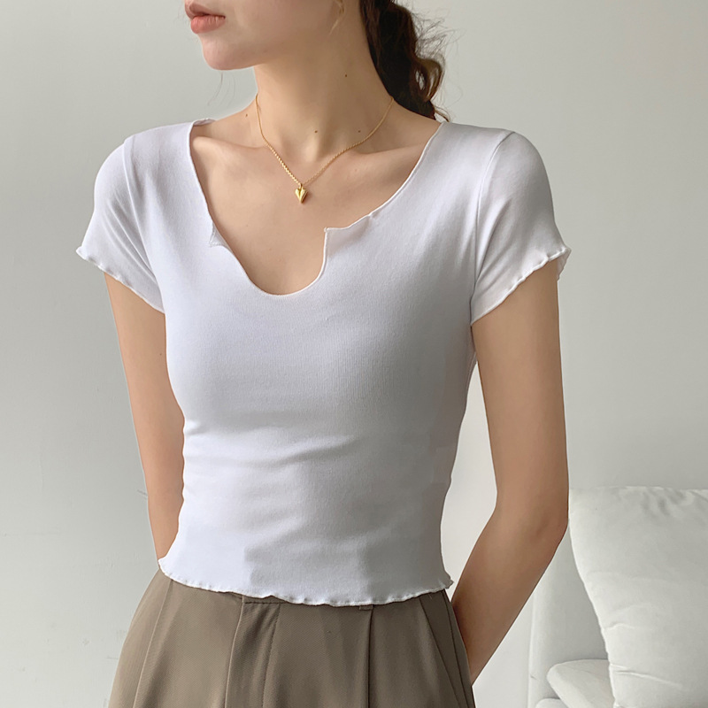 设计感收腰T恤女夏季新款正肩短袖不规则下摆品质上衣