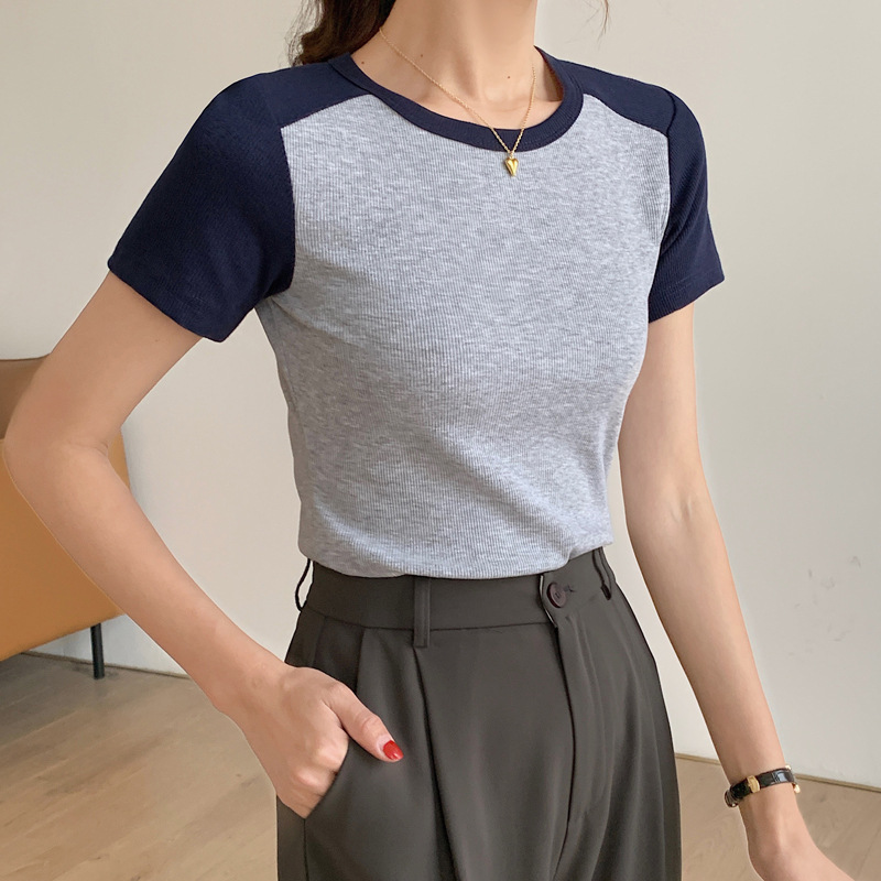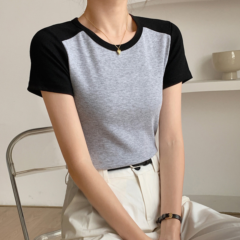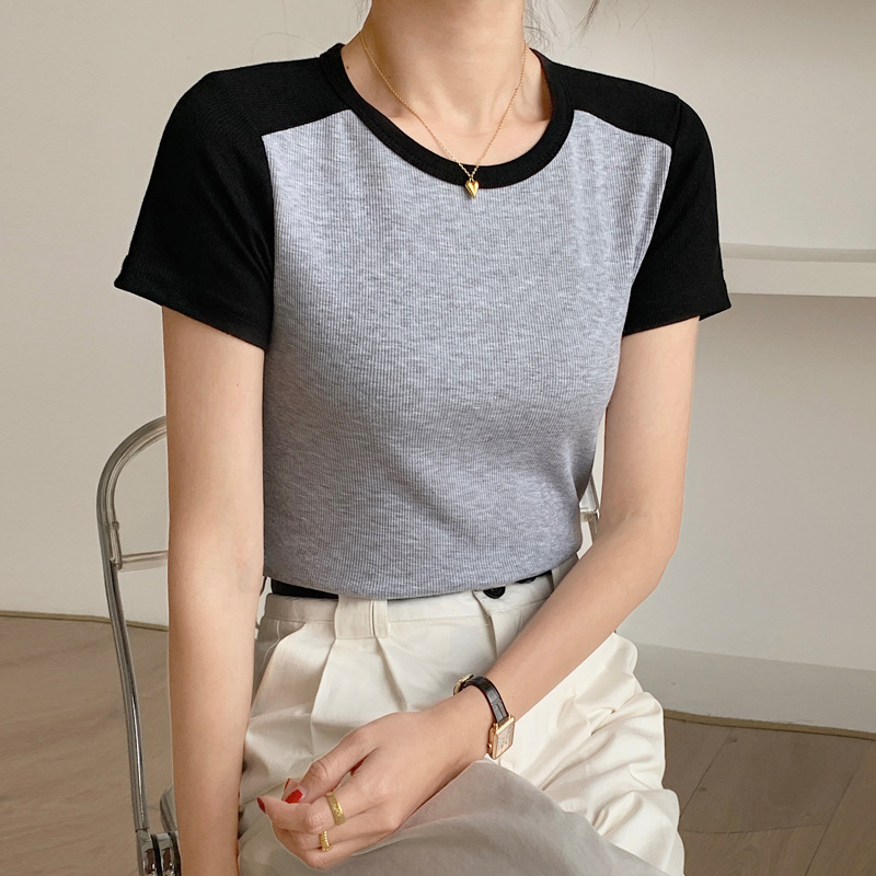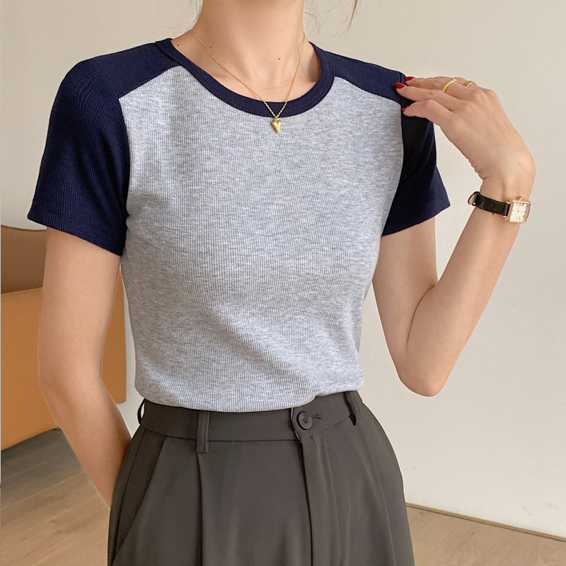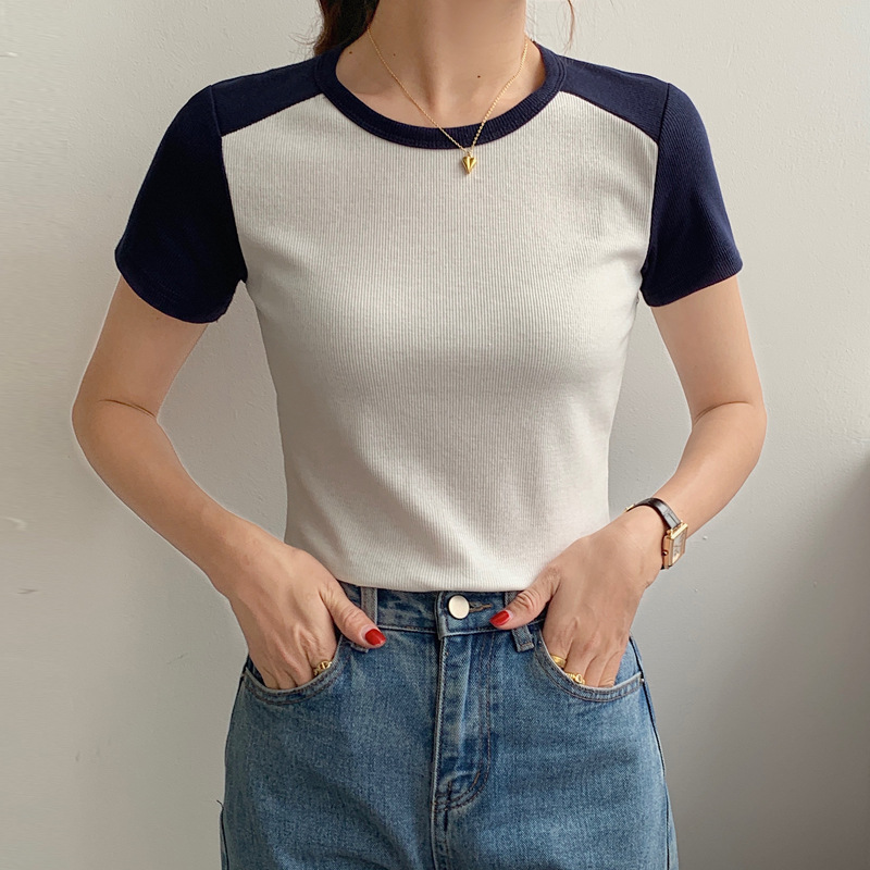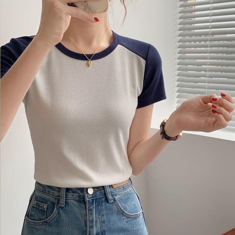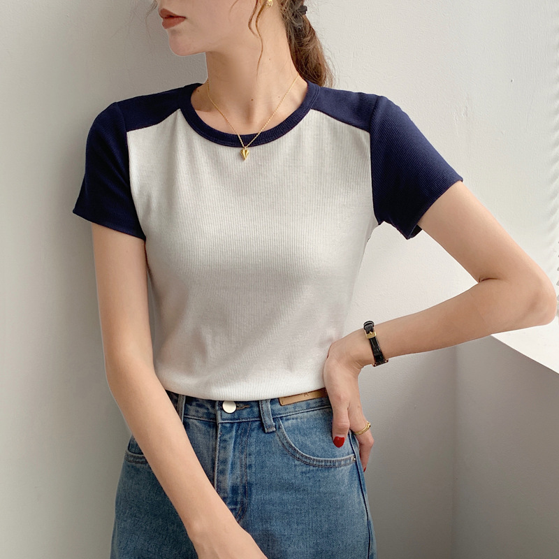 【价值高于价格】高级撞色短袖T恤女夏新款百搭复古打底上衣