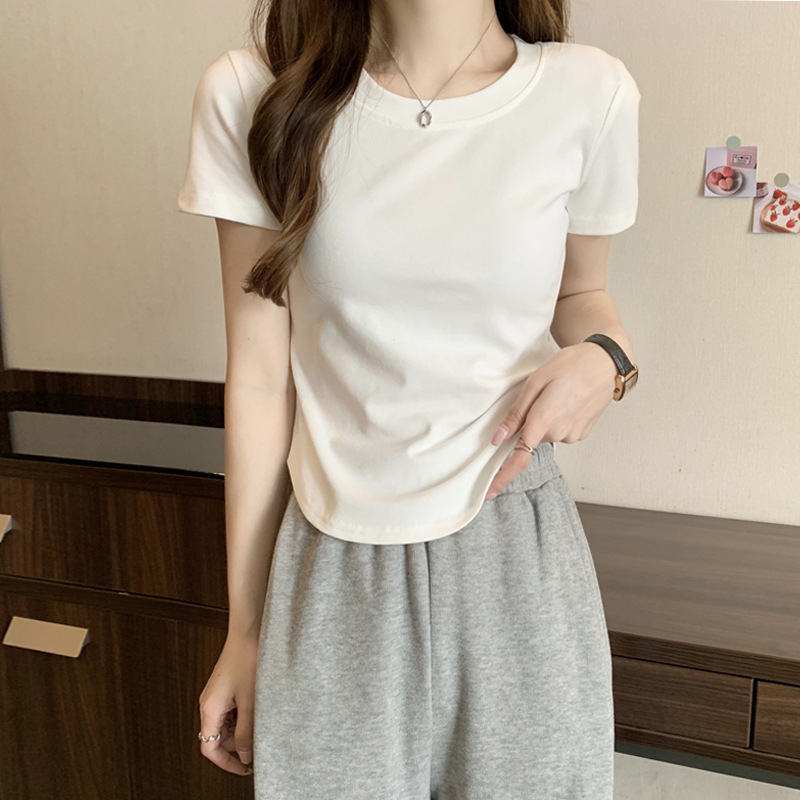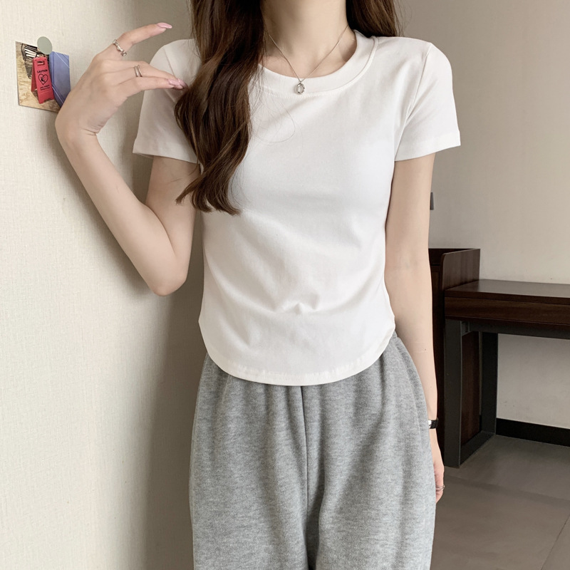 【价值高于价格】纯棉不规则t恤女夏新款修身显瘦打底衫收腰上衣