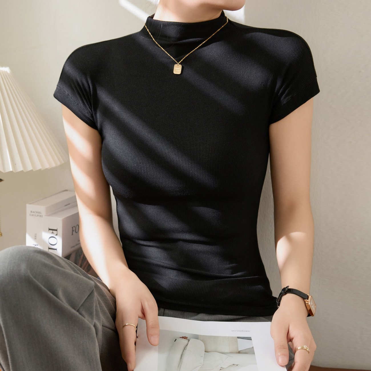 【价值高于价格】插肩短袖紧身T恤女夏季新款显瘦立领打底衫气质