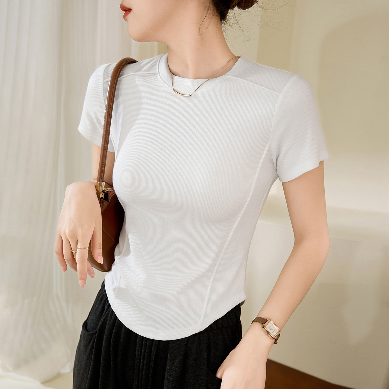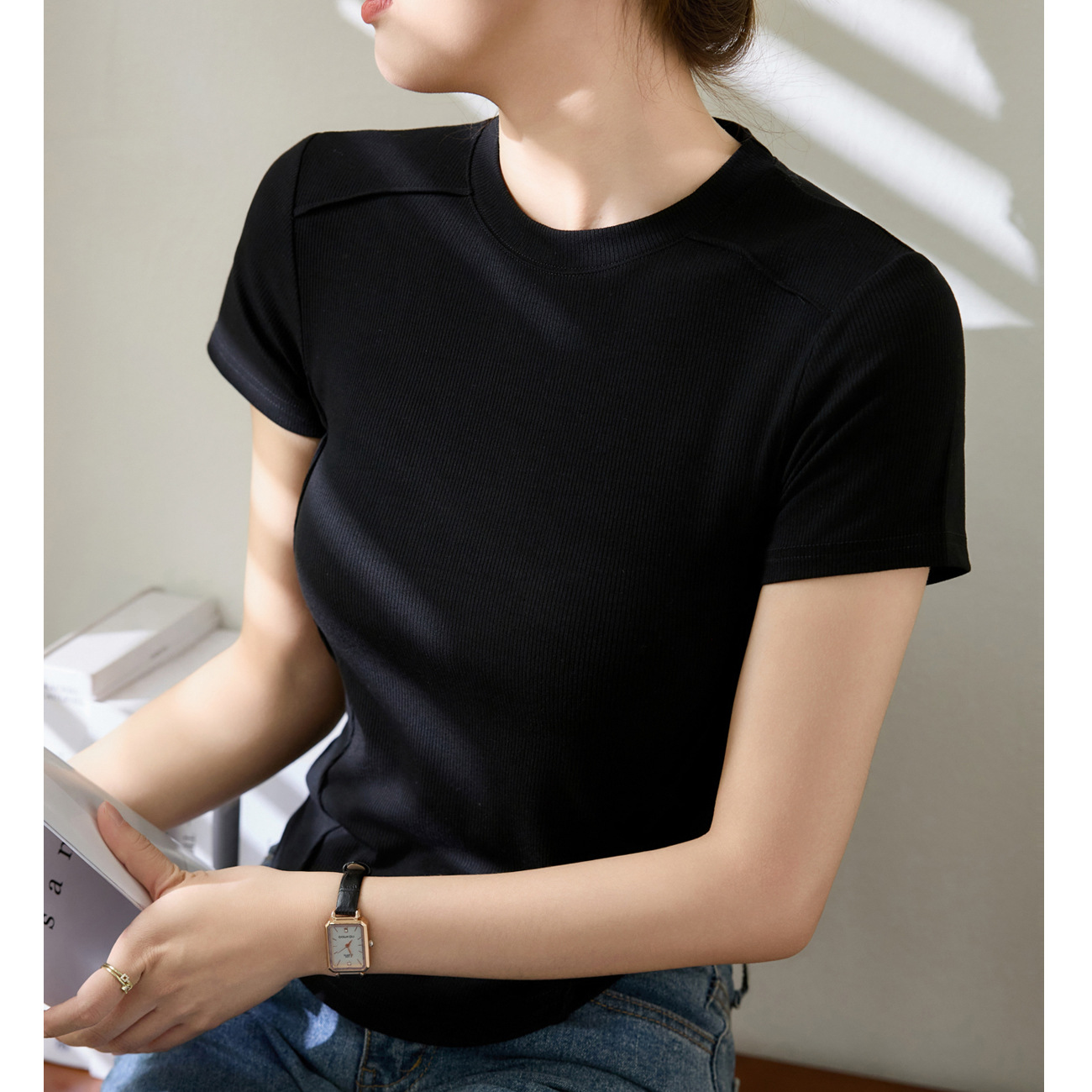 【价值高于价格】立体线条设计感高弹螺纹棉T恤女夏新款短袖上衣