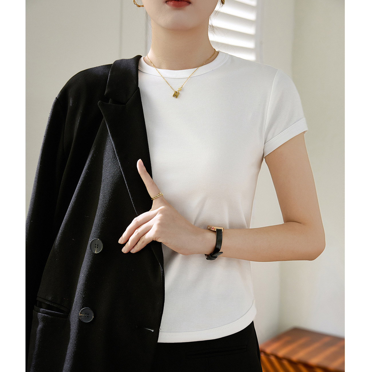 【价值高于价格】高级纯棉短袖T恤女夏季新款修身上衣弧形打底衫