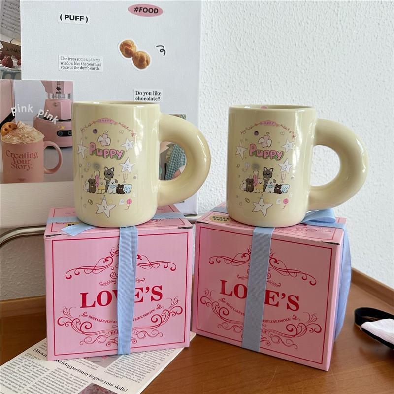 原创小狗陶瓷杯子高颜值胖手柄马克杯小众少女心咖啡杯水杯礼盒装