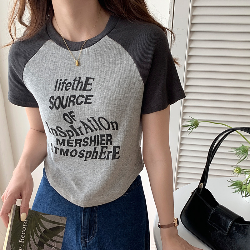 美式印花短袖t恤女夏季新款插肩设计感显瘦短款上衣女