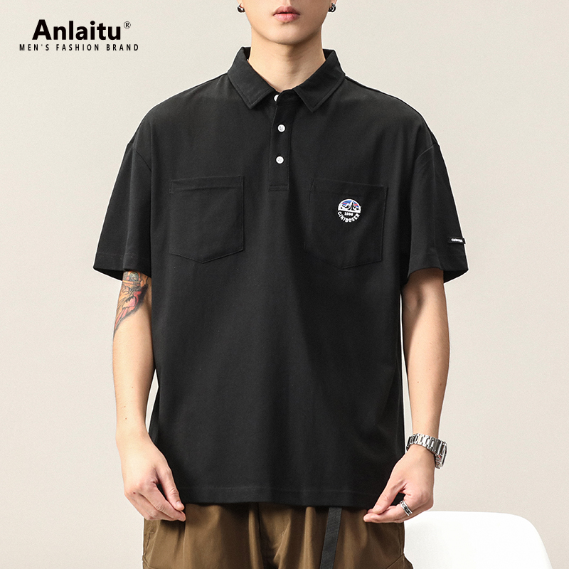 春夏季短袖T恤男士潮牌简约感Polo衫ins潮流工装风宽松半袖男