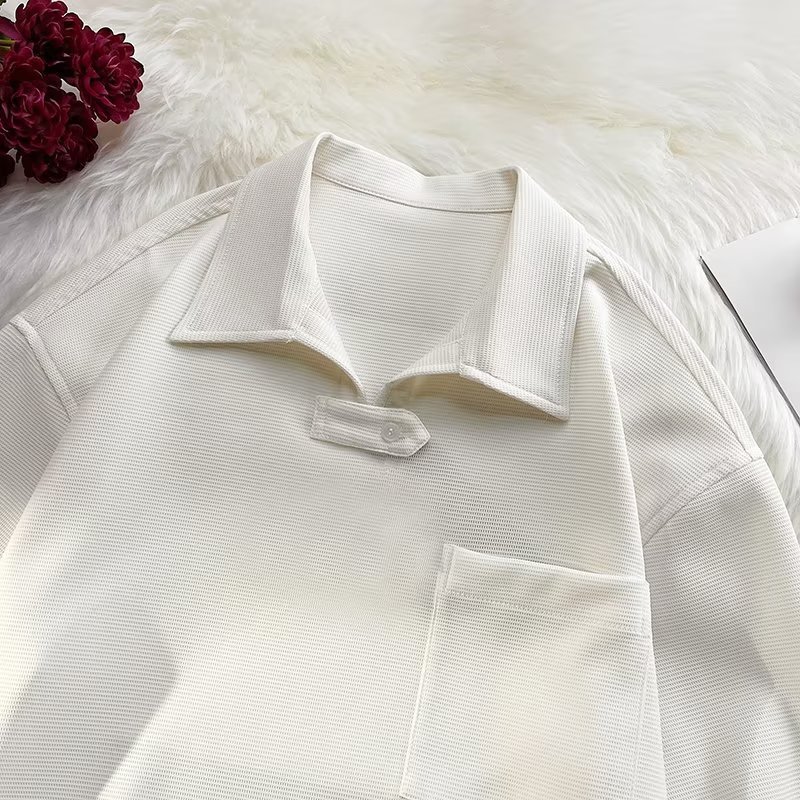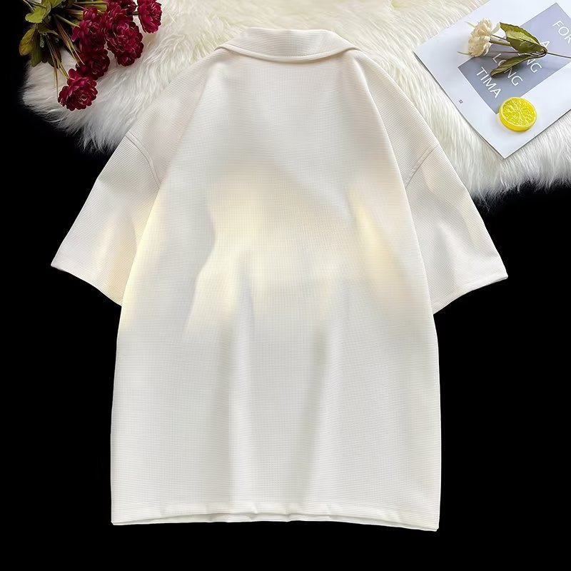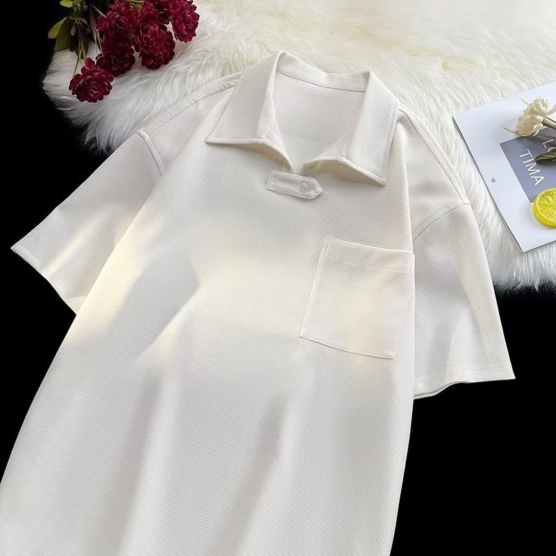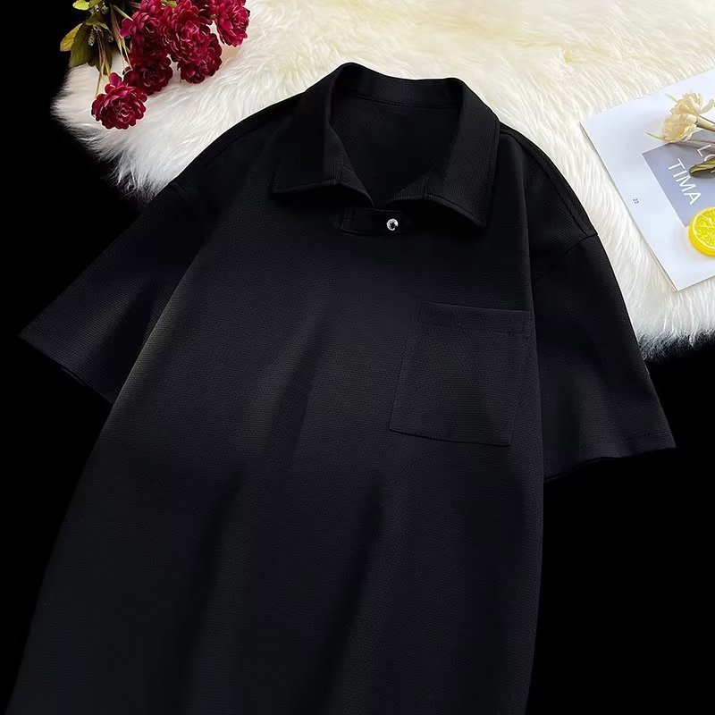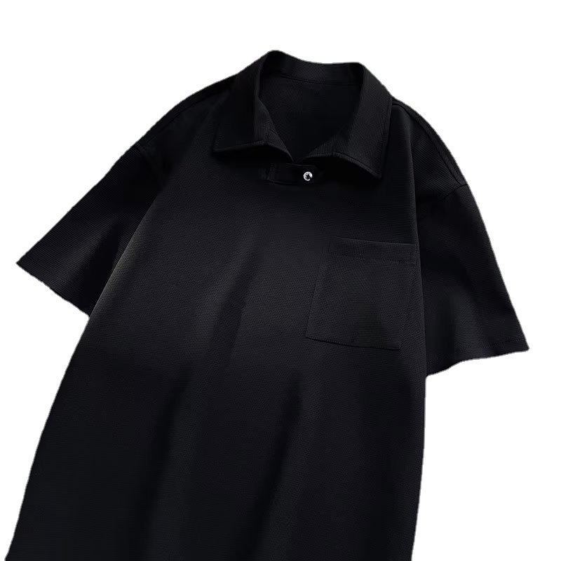 POLO领华夫格t恤男夏季新款日系风宽松男士短袖上衣纽扣小设计潮