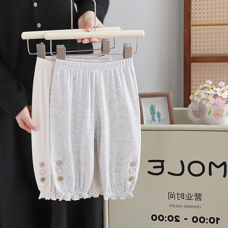 女童夏装休闲裤宝宝防洋气儿童个性潮牌韩版爱心蚊刺绣冰丝抖抖裤