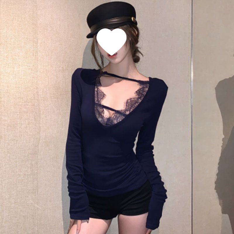 新款纯欲风辣妹长袖正肩t恤女修身显瘦百搭设计感打底衫上衣
