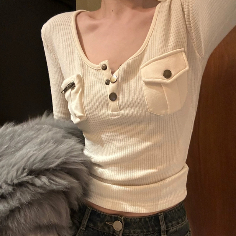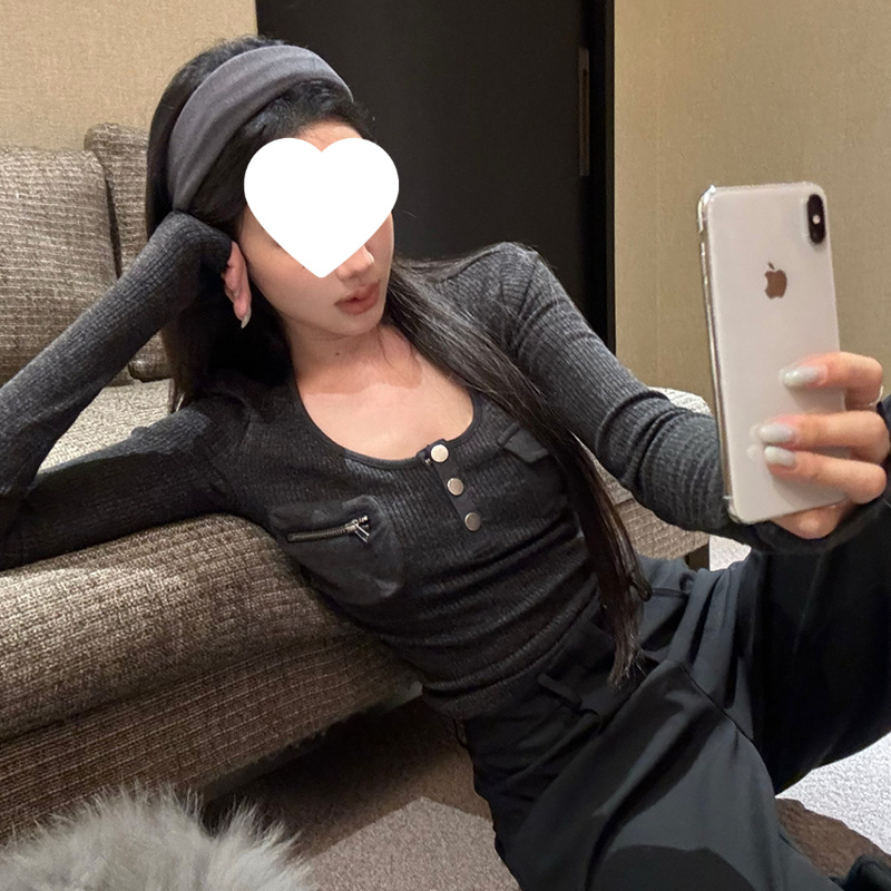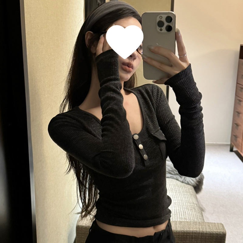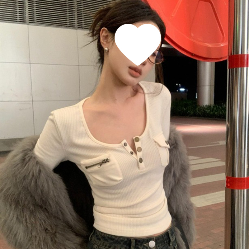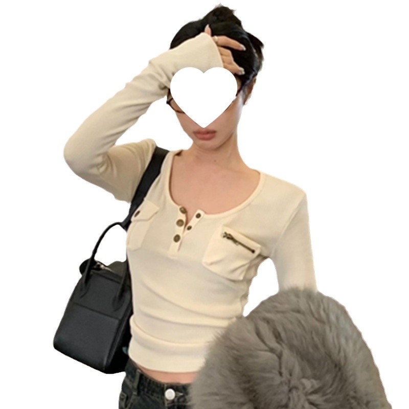 新款纯欲风辣妹短款长袖t恤女修身显瘦百搭设计感打底衫上衣