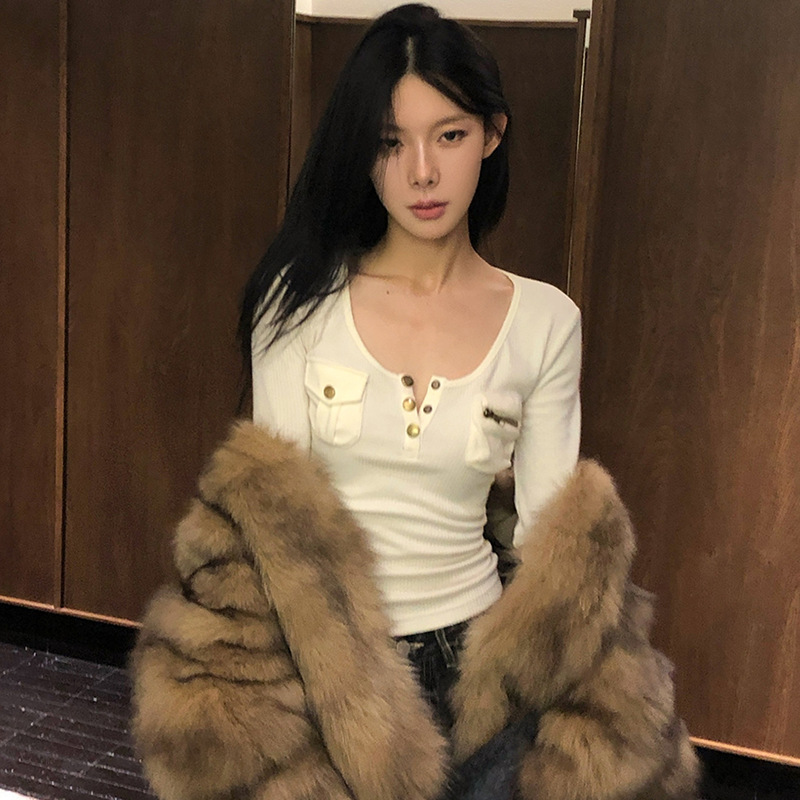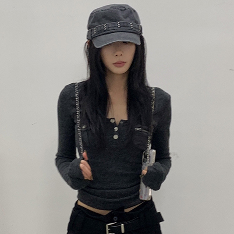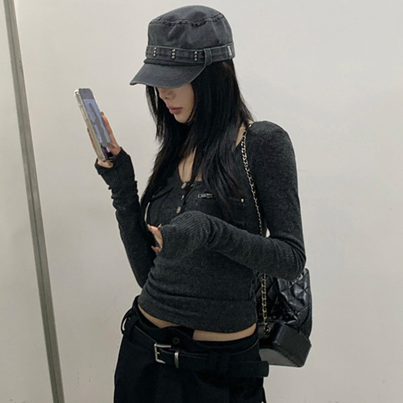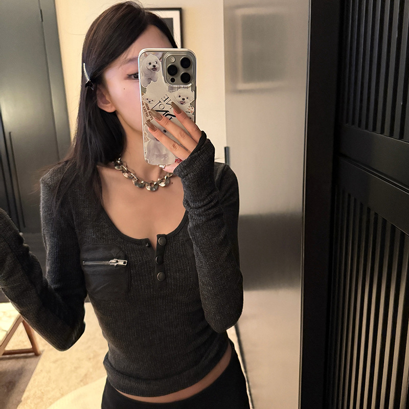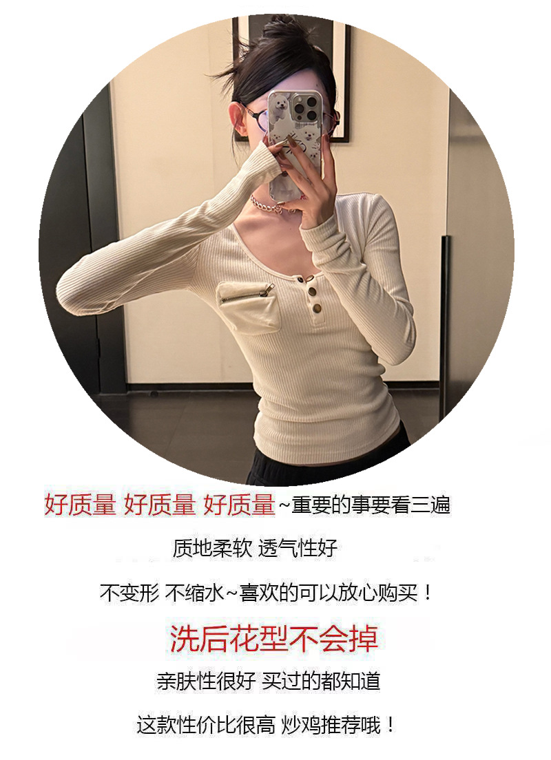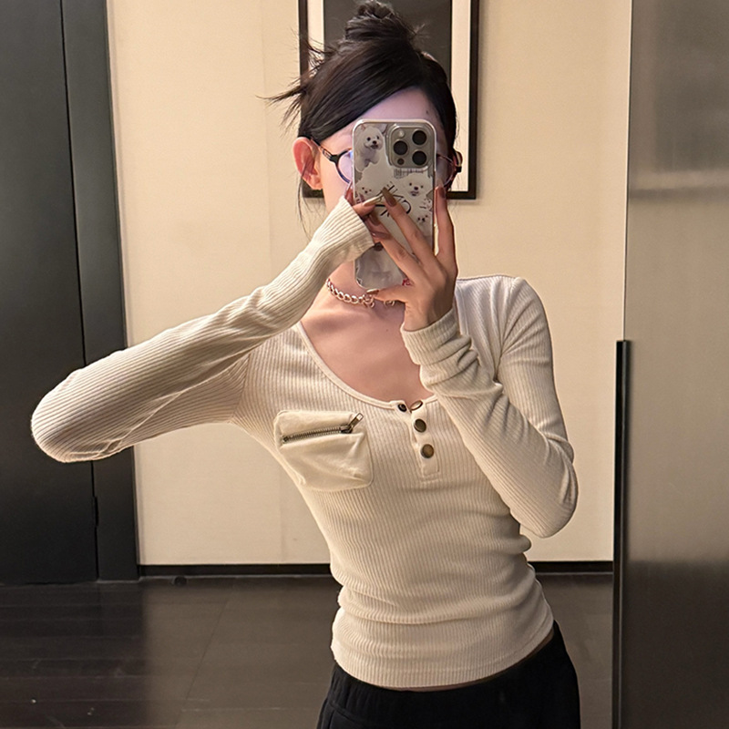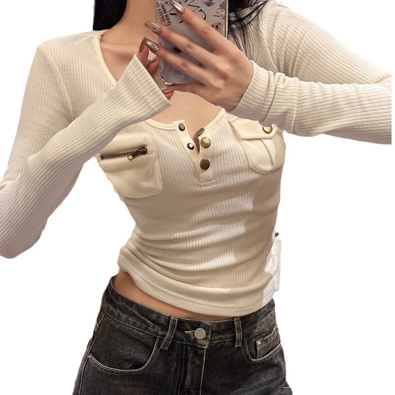 新款纯欲风辣妹短款长袖t恤女修身显瘦百搭设计感打底衫上衣