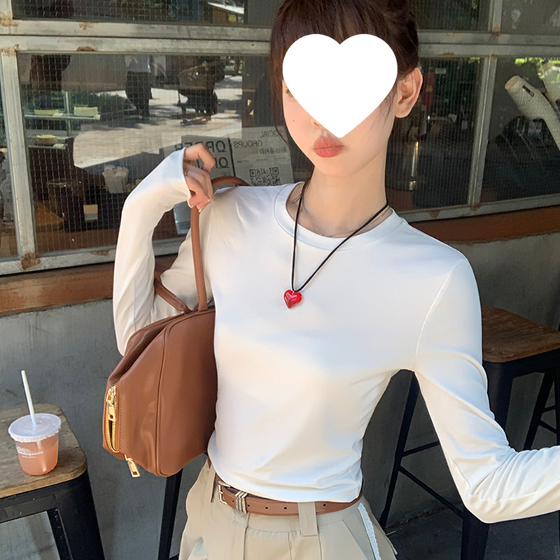 新款纯欲风辣妹短款长袖t恤女修身显瘦百搭设计感打底衫上衣
