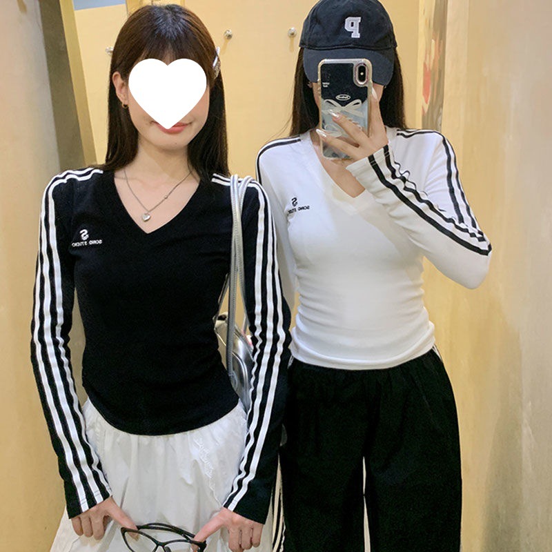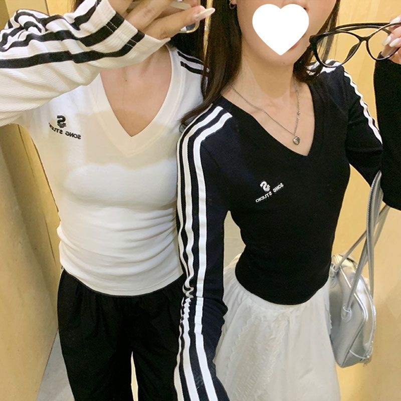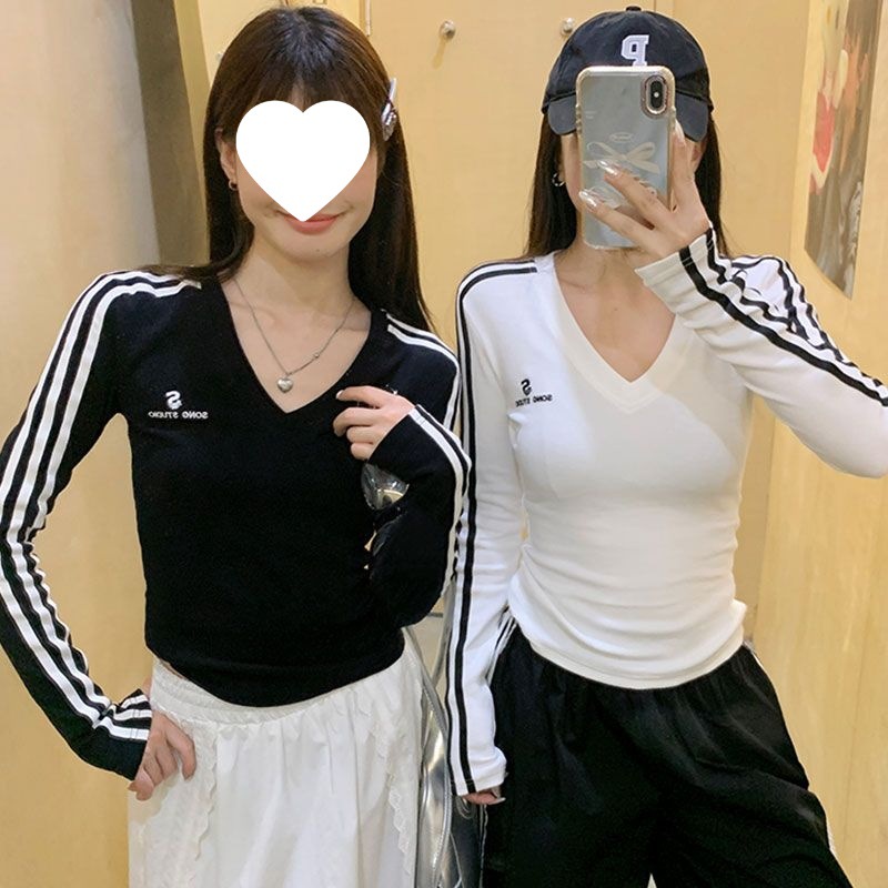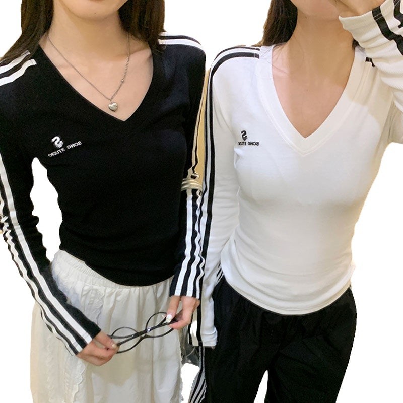 新款纯欲风辣妹短款正肩长袖t恤女修身显瘦百搭设计感上衣女