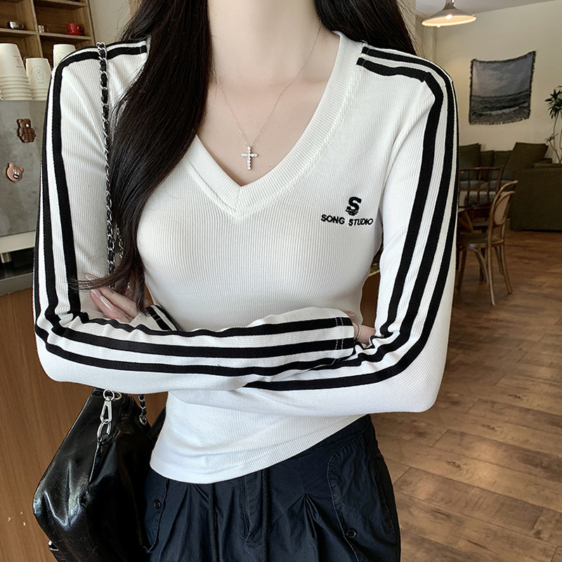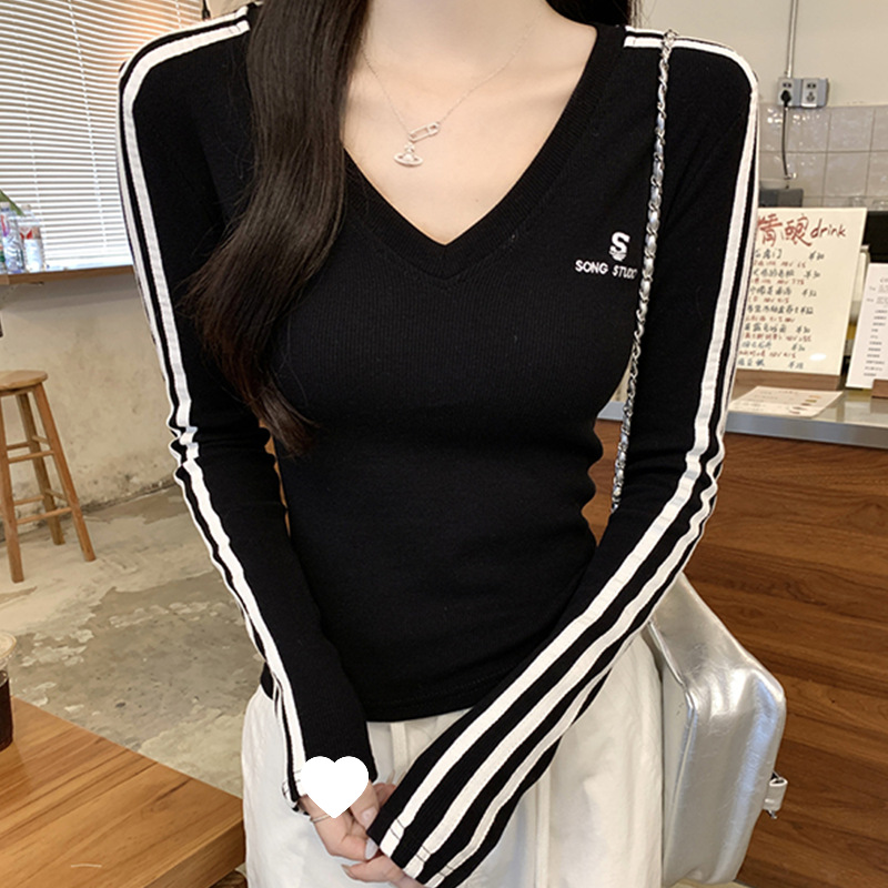 新款纯欲风辣妹短款纯棉长袖t恤女修身显瘦百搭设计感上衣女