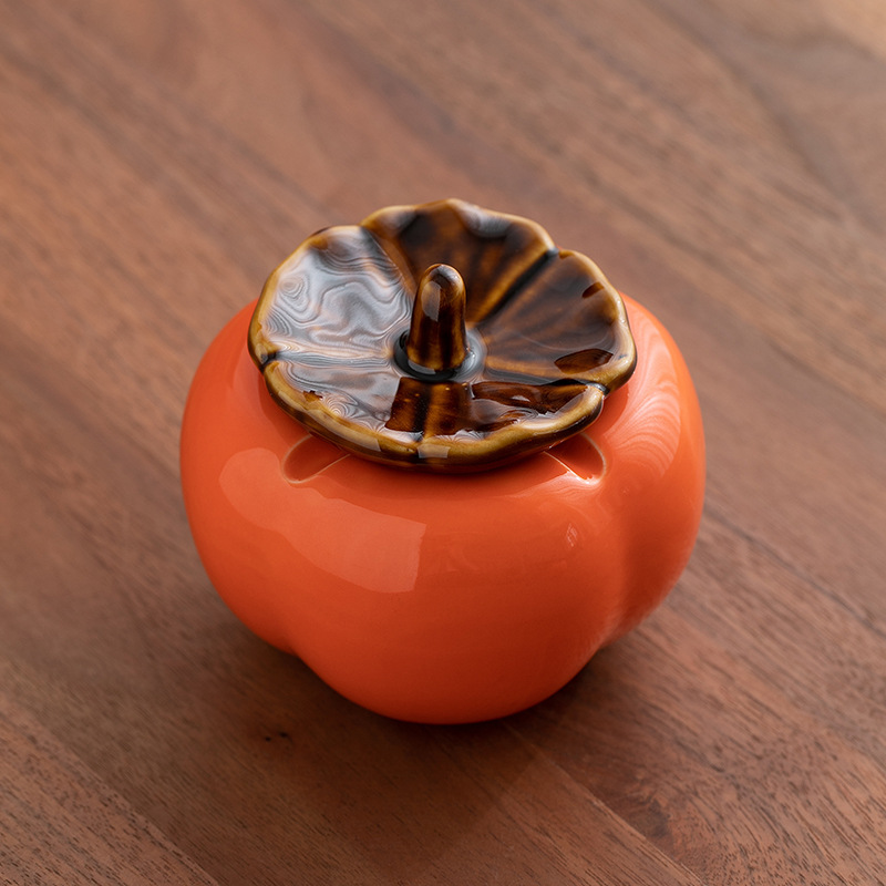 柿子烟灰缸陶瓷中式复古创意个性家用客厅办公室带盖防飞礼品