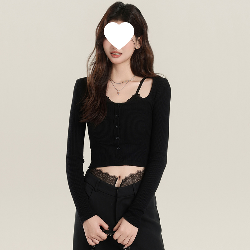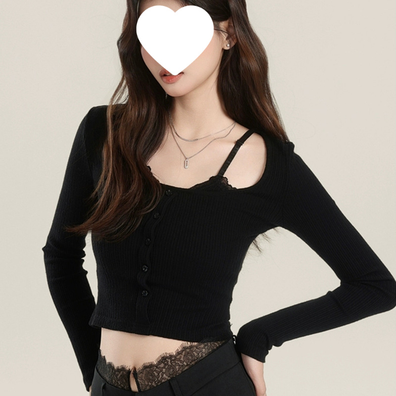 新款纯欲风辣妹蕾丝短款长袖t恤女修身显瘦百搭设计感上衣女