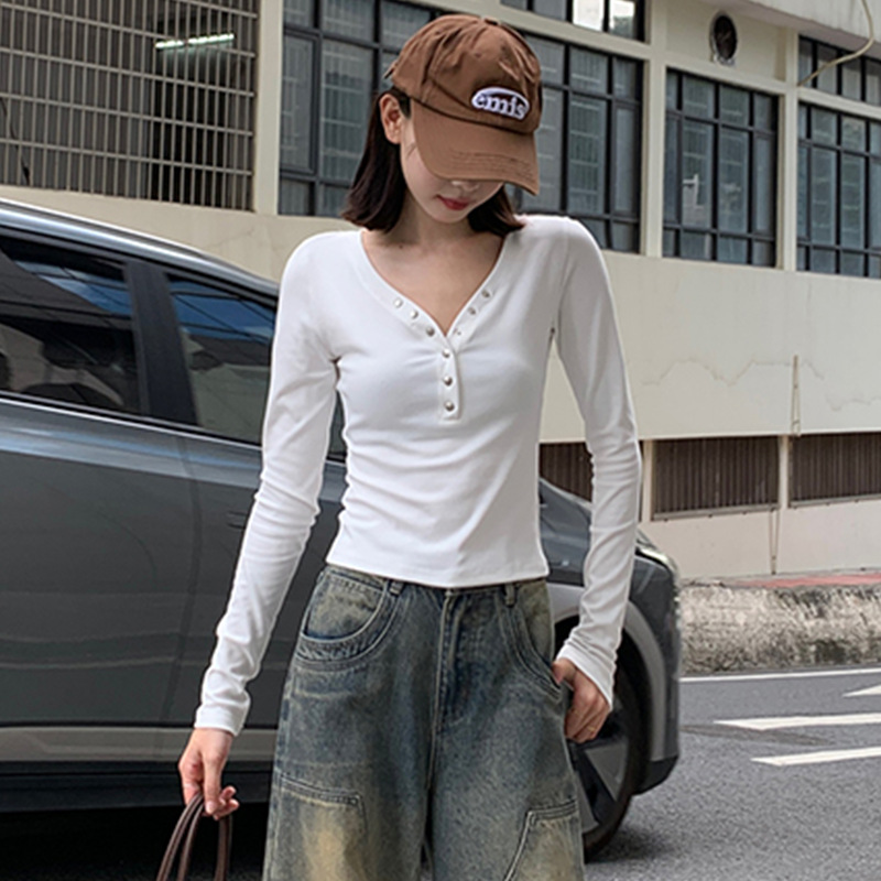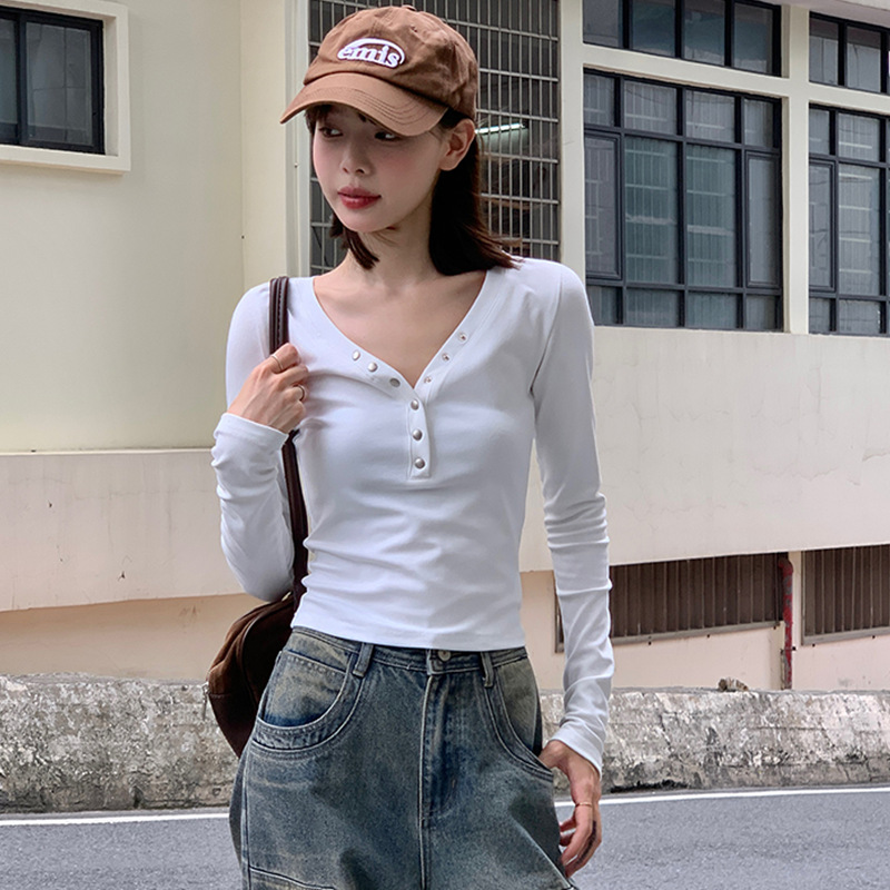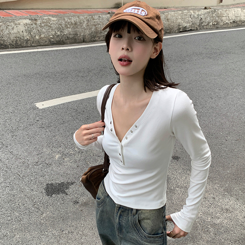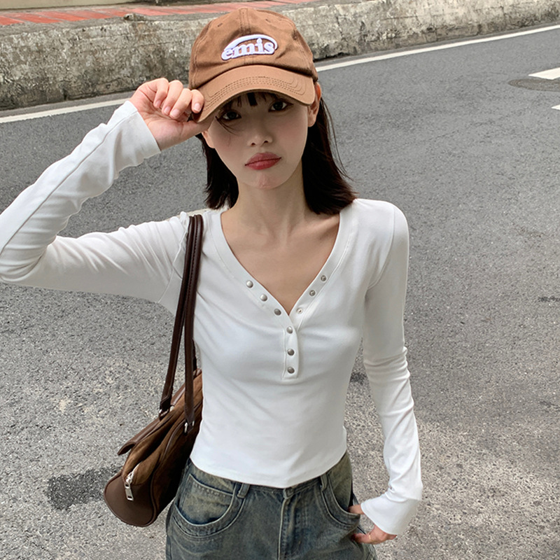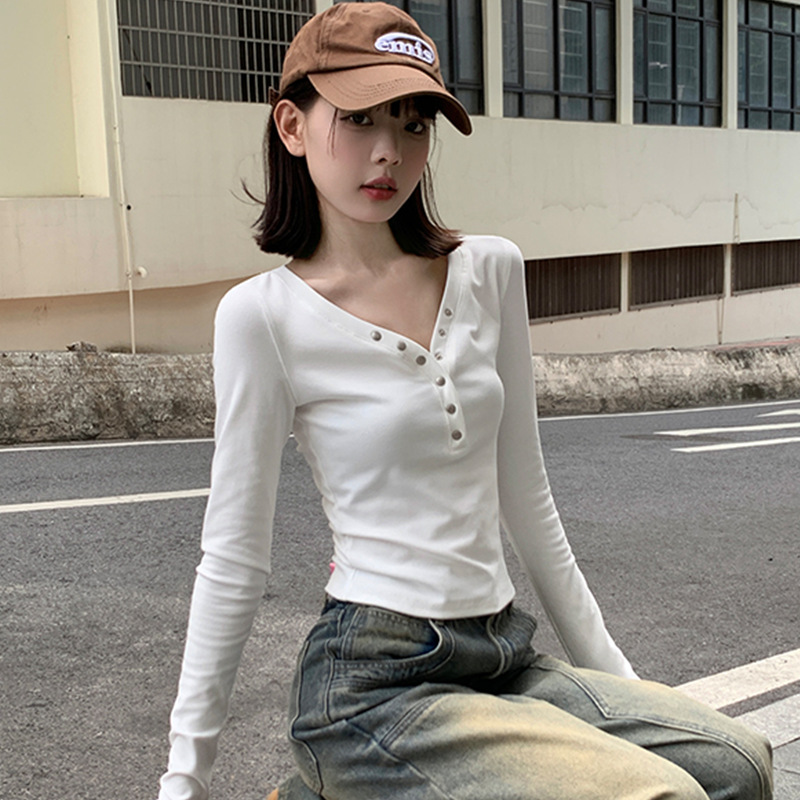 新款纯欲风辣妹短款纯棉长袖t恤女修身显瘦设计感打底衫上衣