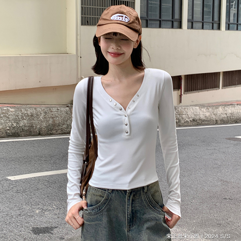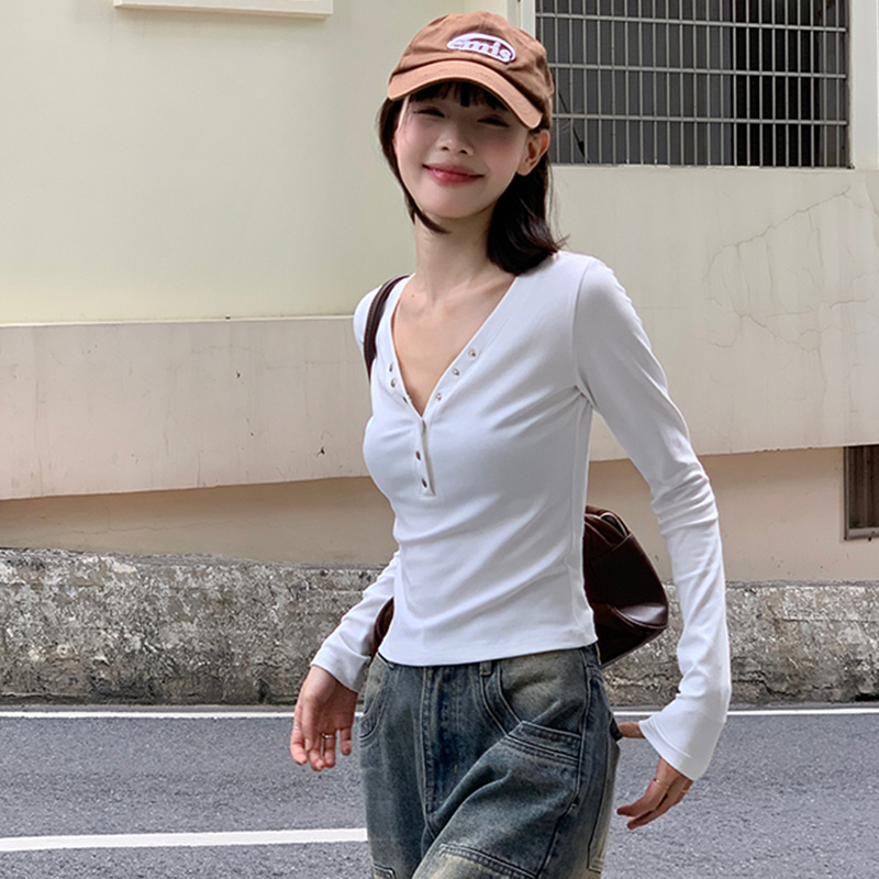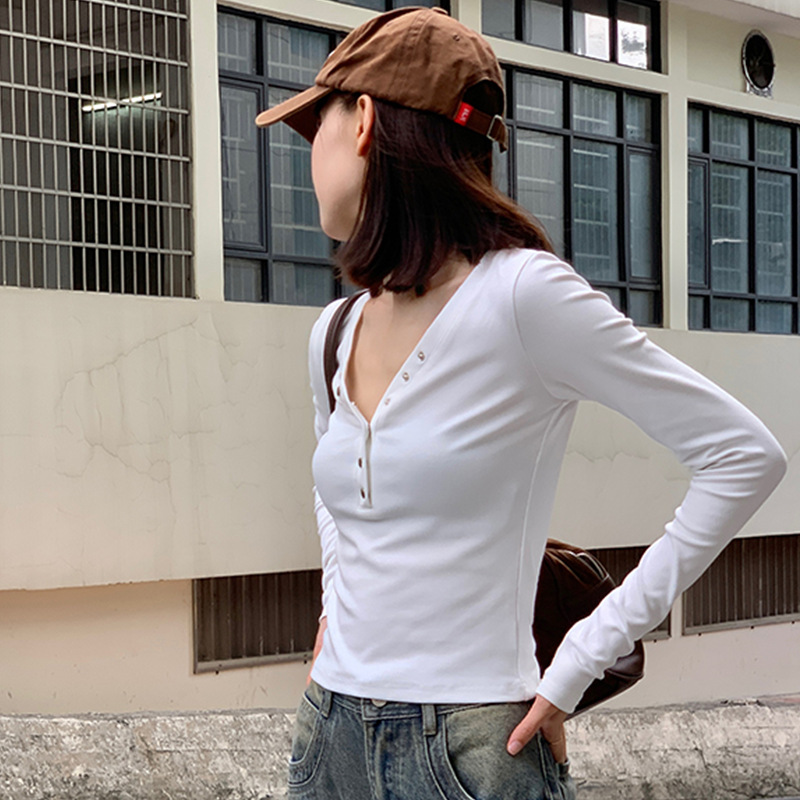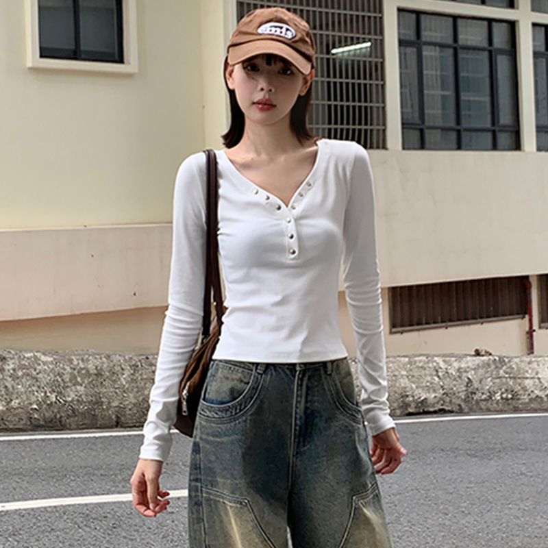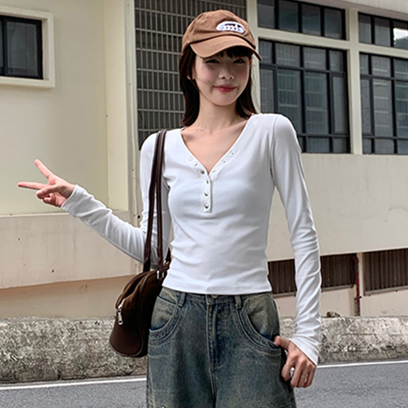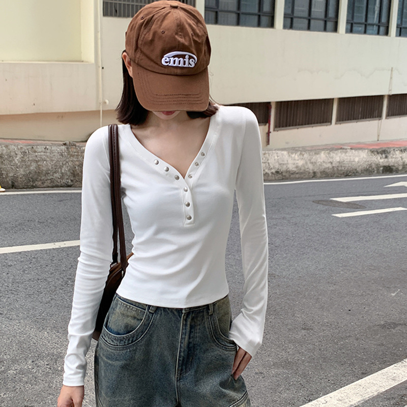 新款纯欲风辣妹短款纯棉长袖t恤女修身显瘦设计感打底衫上衣