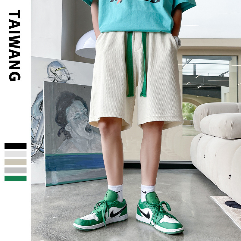 潮牌五分短裤男夏季新款裤子男宽松华夫格短裤男