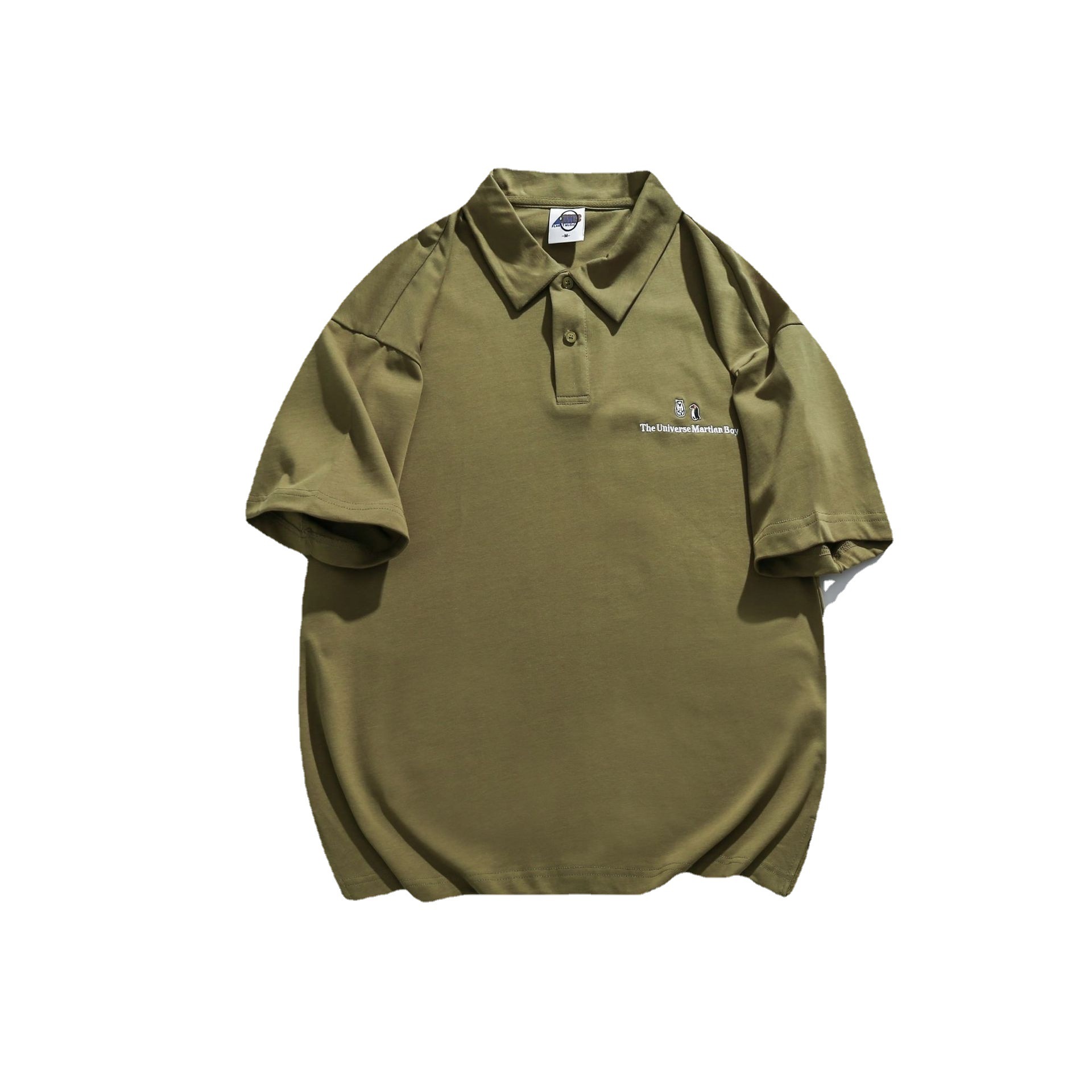 夏季新款男士水洗棉宽松休闲Polo短袖高克重纯色大码潮男T6恤男装