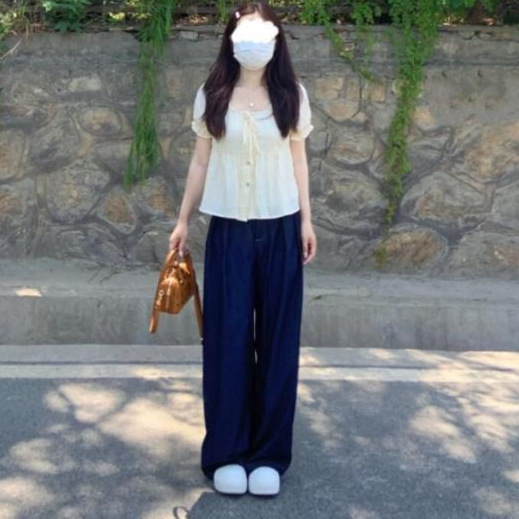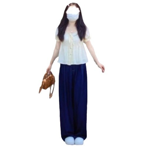 亿涵梦~设计感松紧腰黑色休闲裤直筒裤女夏季宽松显瘦A字阔腿跑步