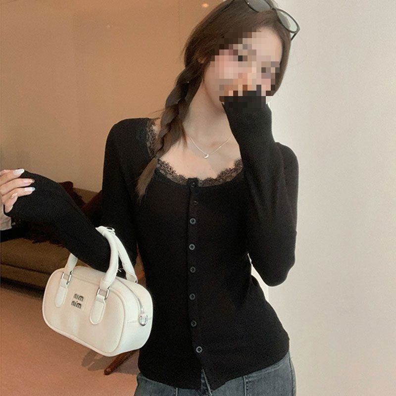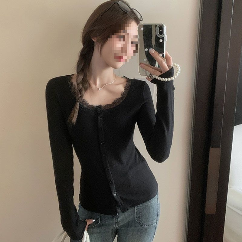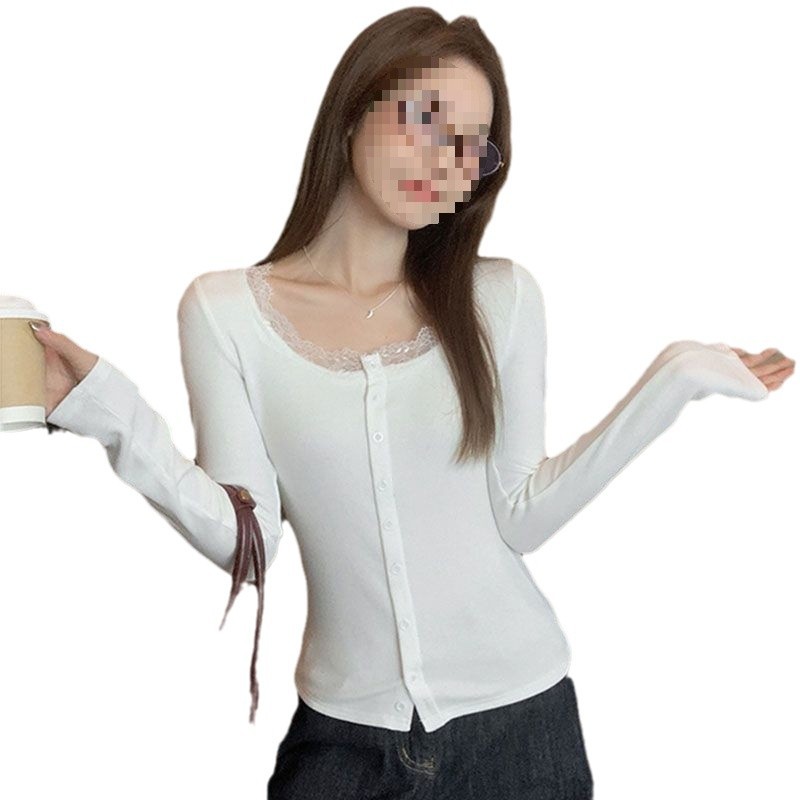 小香蕾丝打底衫女秋冬新款纯欲白色低领辣妹短款内搭茶艺上衣