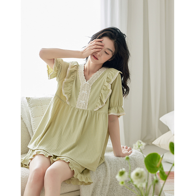 【超柔软】纯棉睡衣女夏款短袖甜美公主风可外穿V领家居服两件套