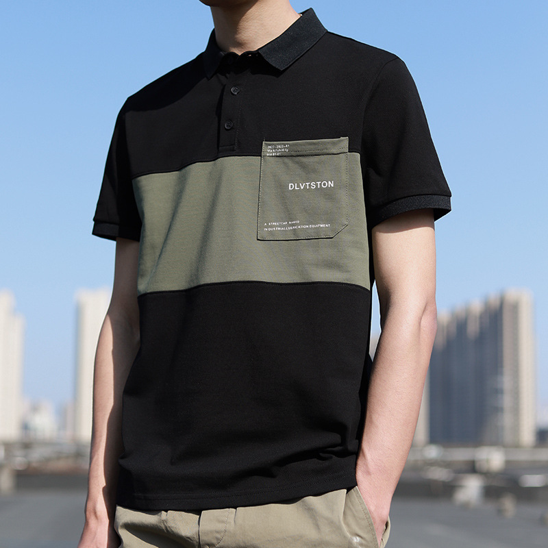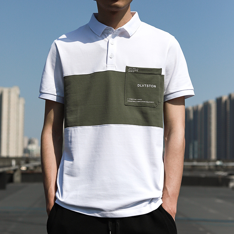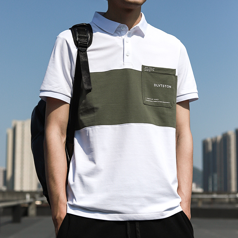 翻领polo衫男士短袖t恤男夏季新款潮流口袋复古半袖体恤宽松上衣