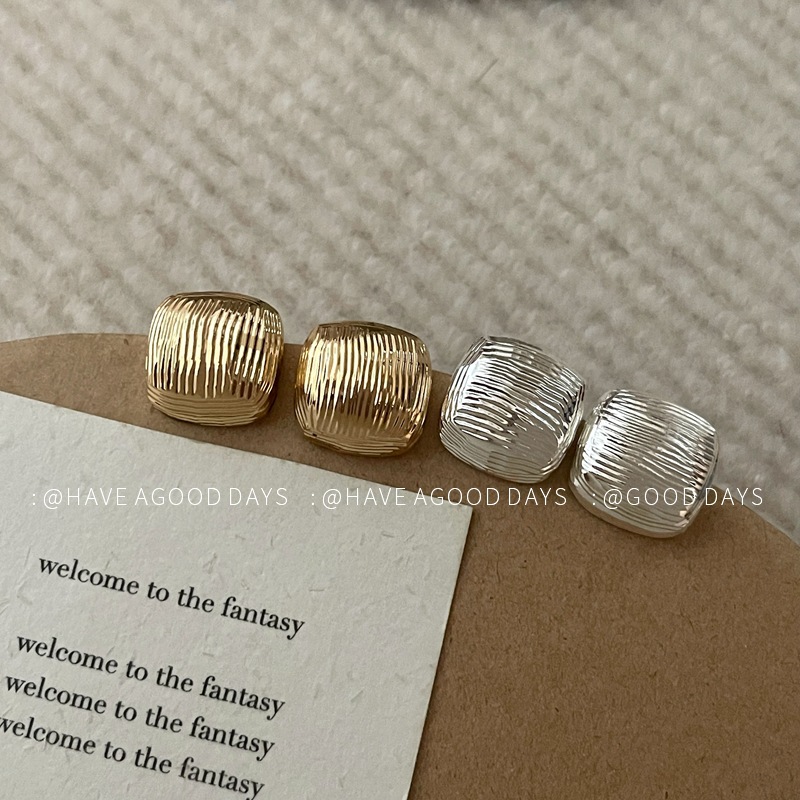 冷淡风个性几何褶皱方形耳环小众设计感气质耳饰925银针高级轻奢~