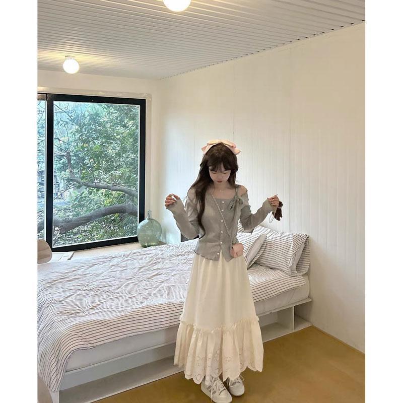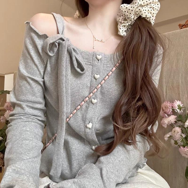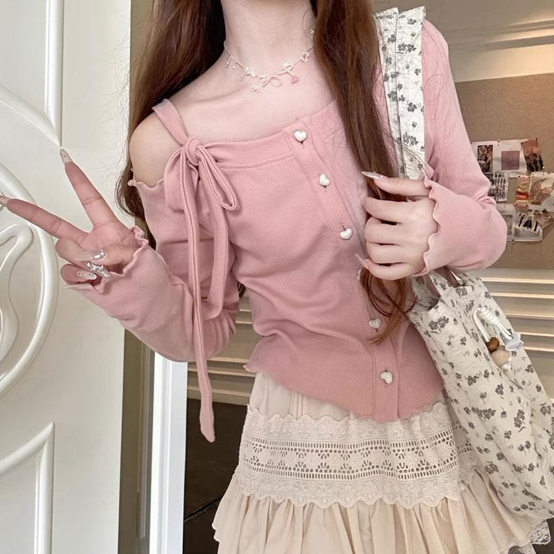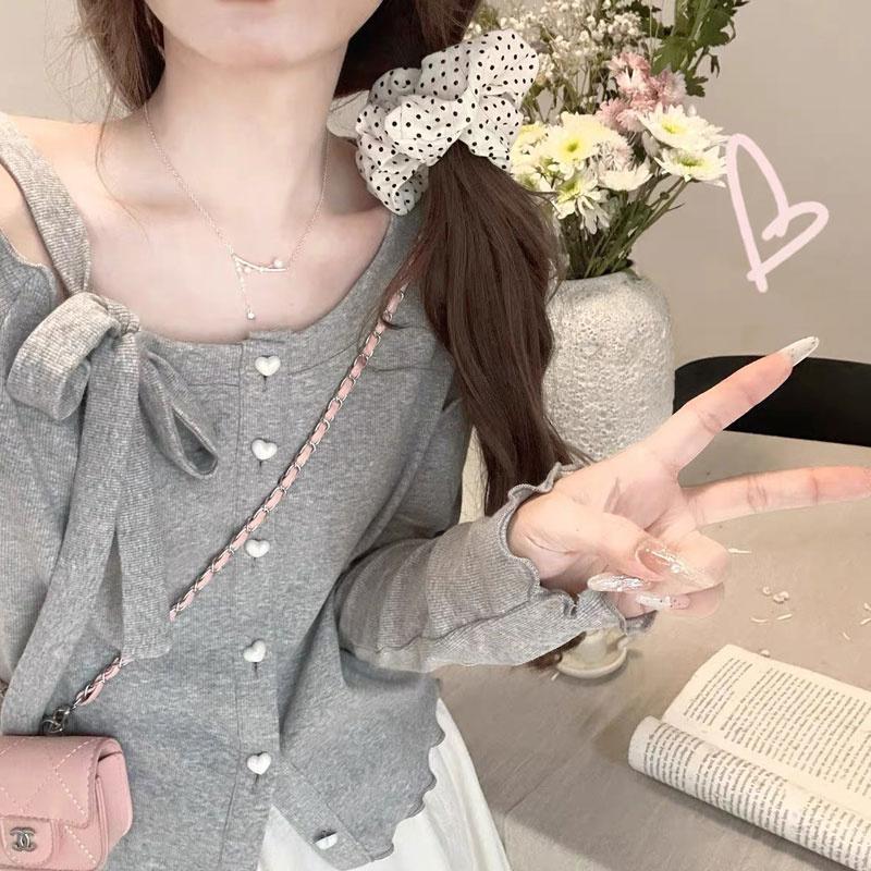 氧气韩女 两色系带开衫女春夏木耳边薄款长袖上衣女百搭潮流
