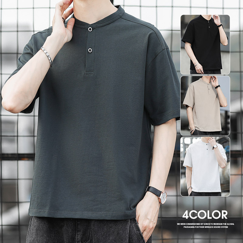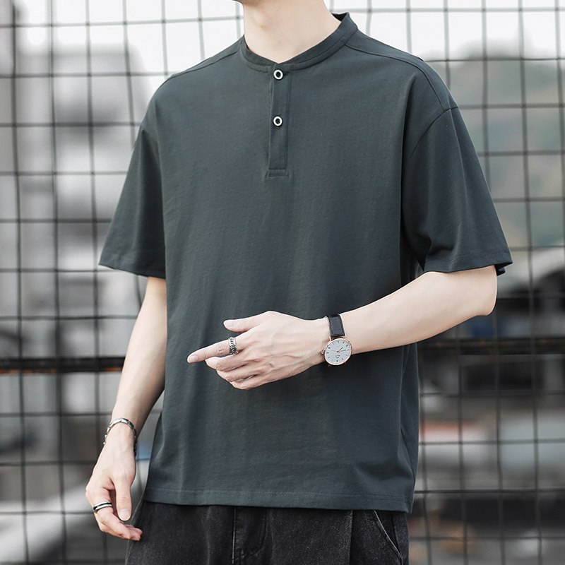 新款纯色男士T恤潮款夏季宽松短袖学生宽松上衣青少年休闲POLO衫