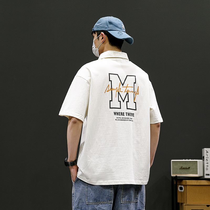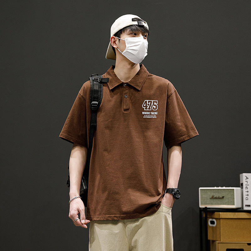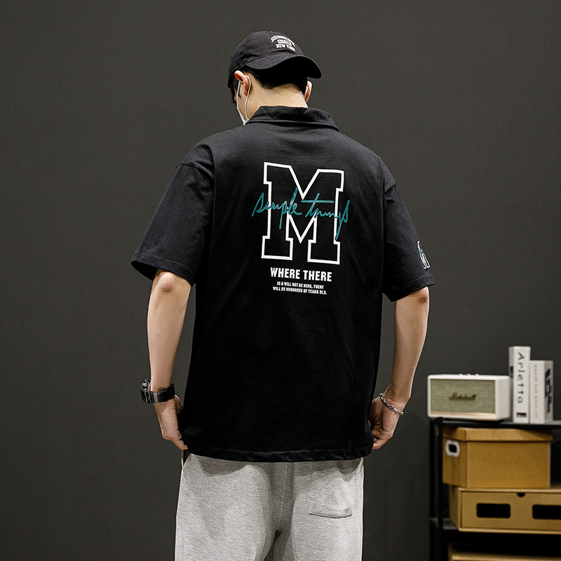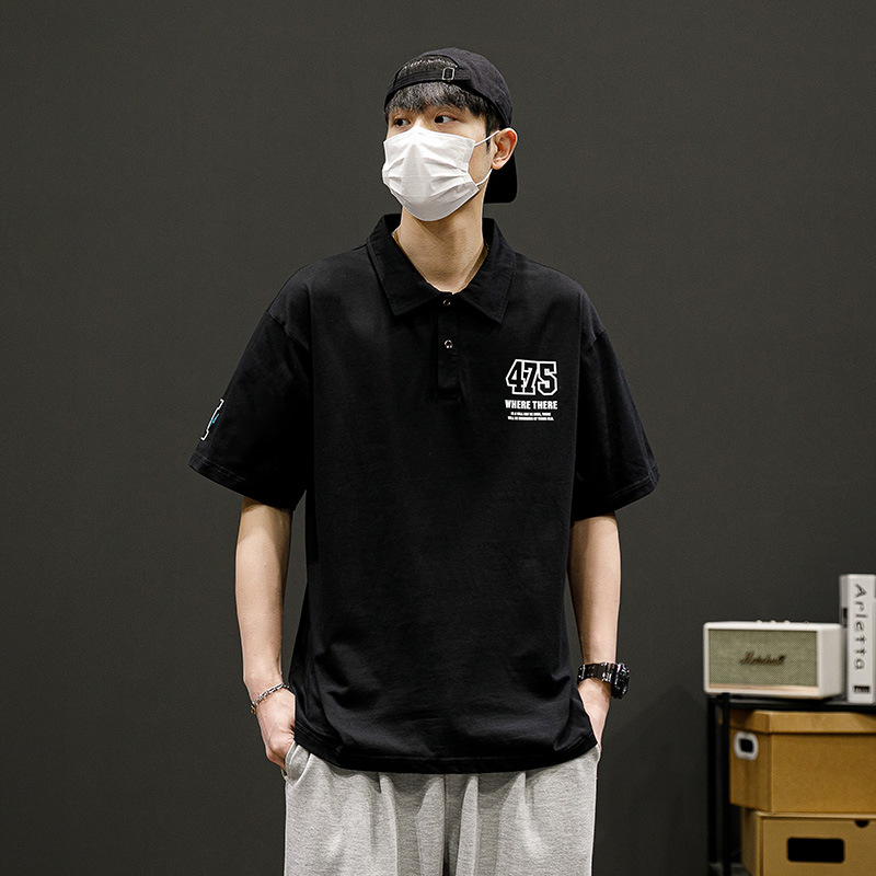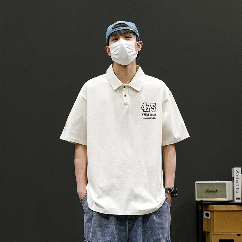 潮牌男士POLO衫翻领短袖T恤宽松潮流夏季半袖落肩袖男款休闲上衣i