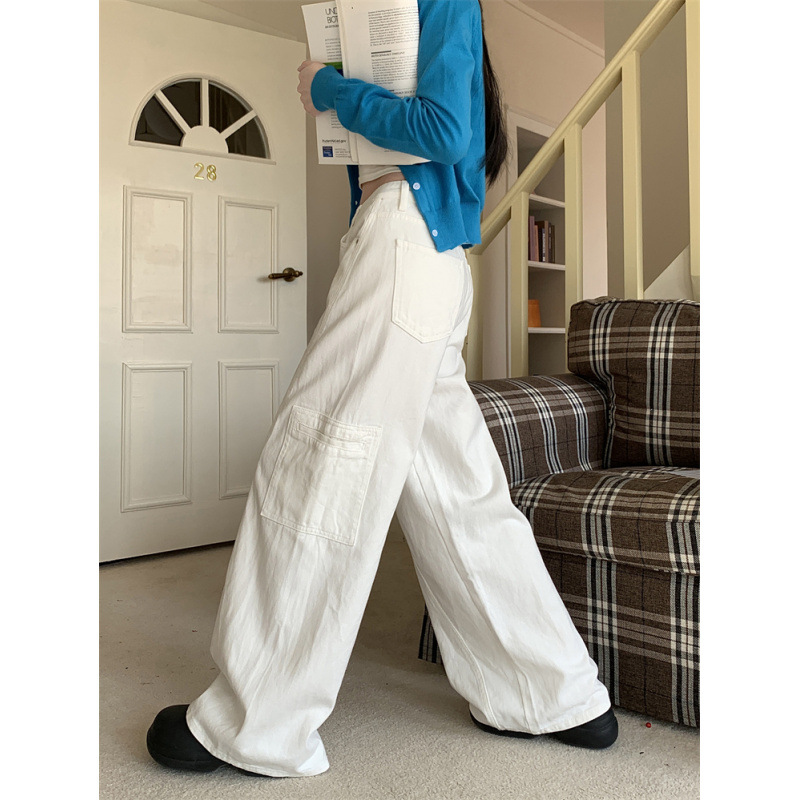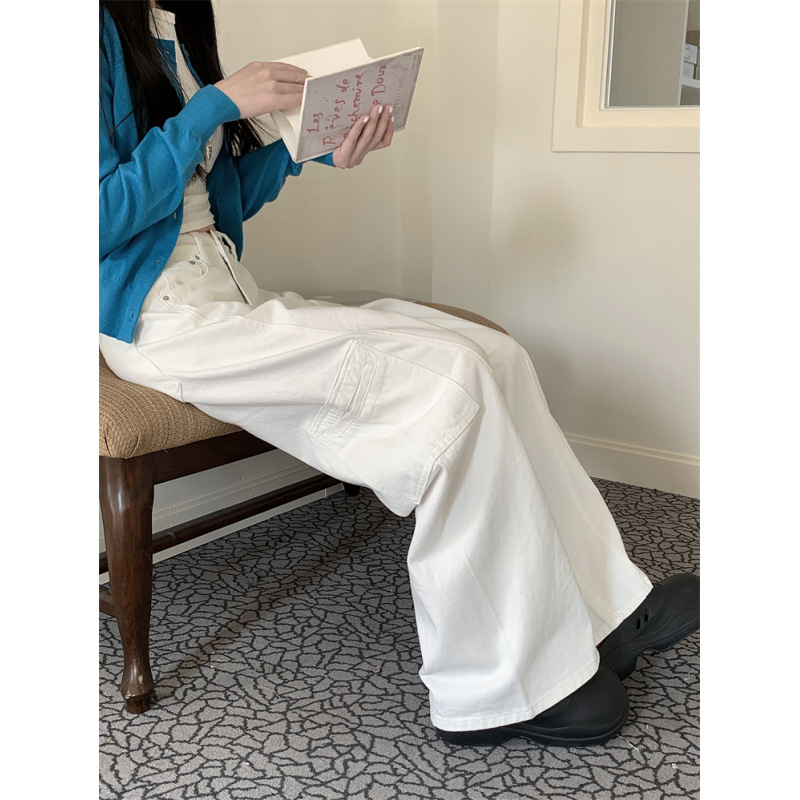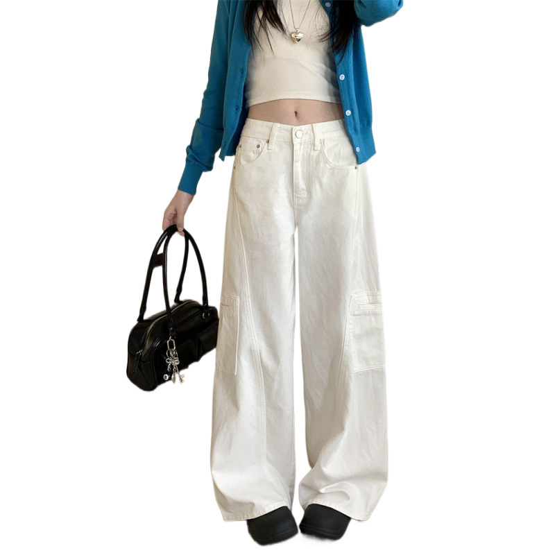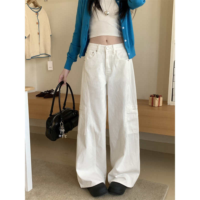 早春美式阔腿工装牛仔裤女新款高腰显瘦直筒拖地长裤女