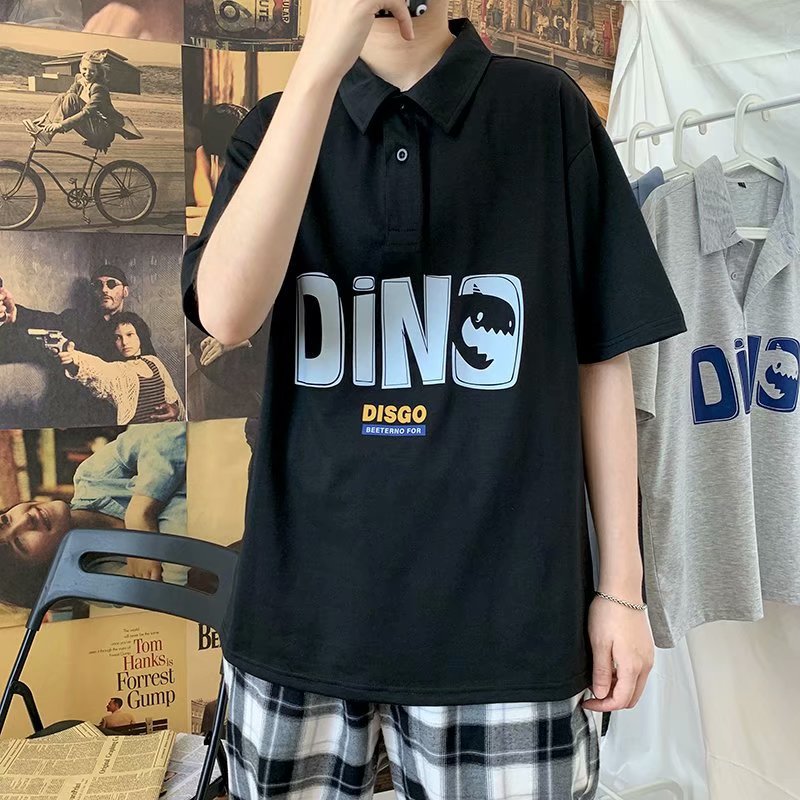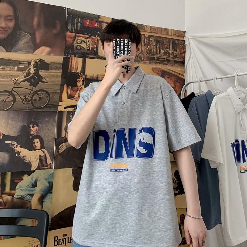 夏季休闲宽松翻领短袖t恤polo衫五分袖男士领欧美街头潮男半袖潮