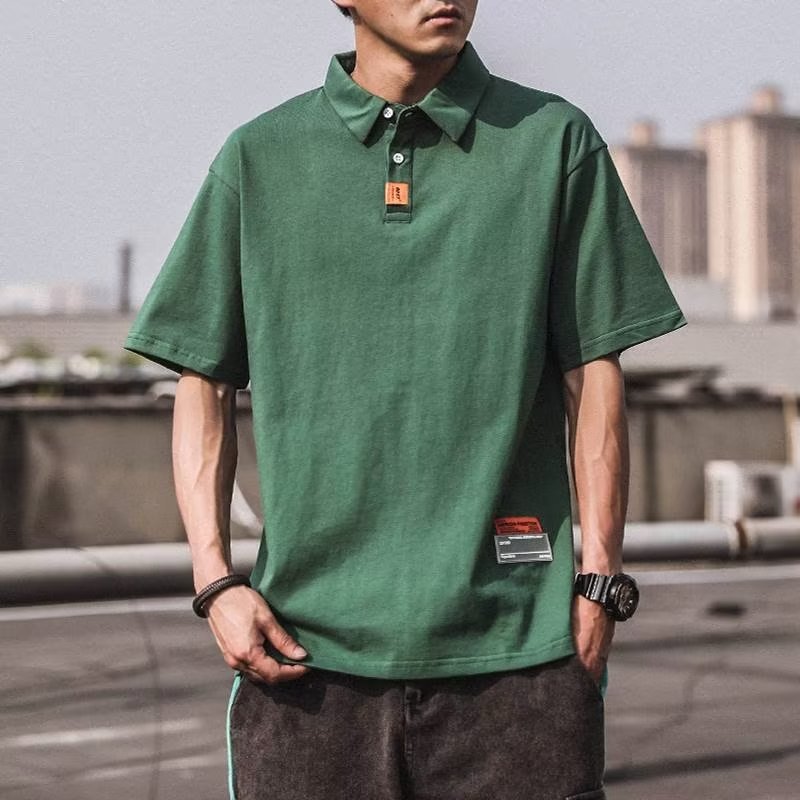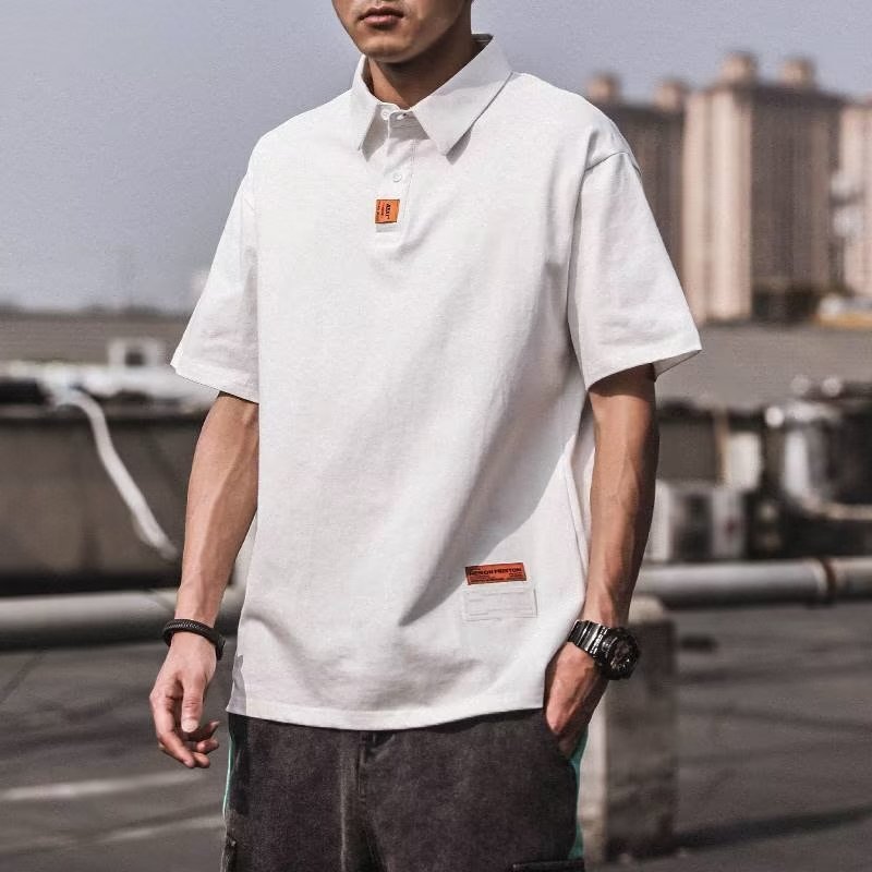 短袖t恤男士夏季新款韩版潮流宽松百搭港风polo衫休闲半袖五分袖