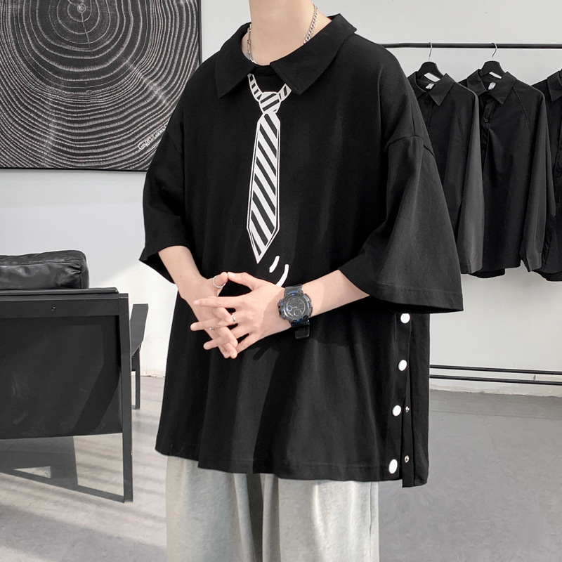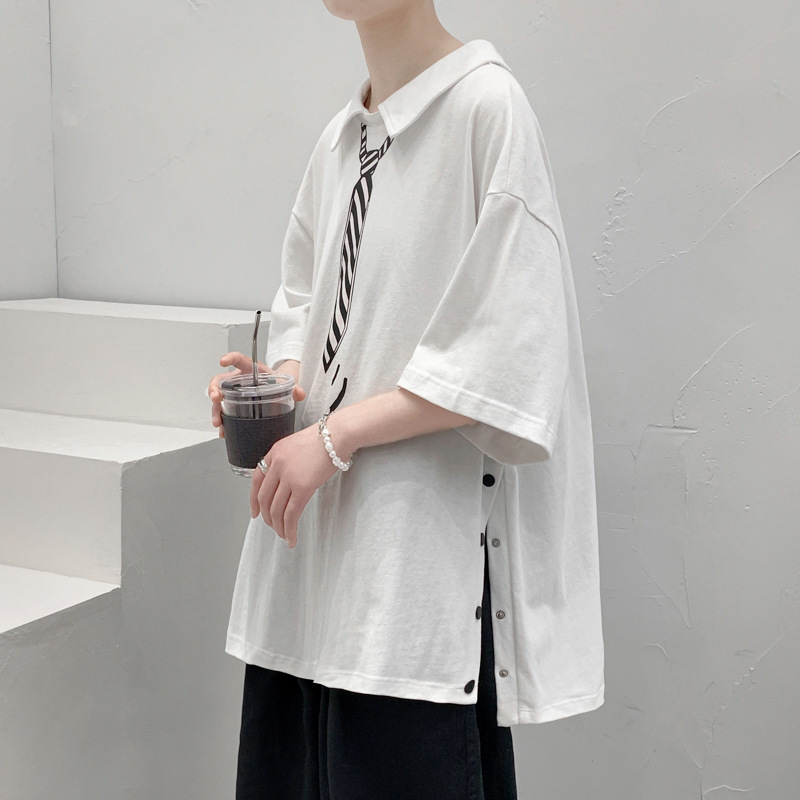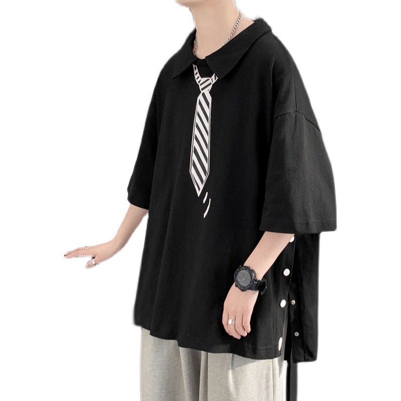 夏装新款男士排扣设计翻领POLO衫韩版青少年宽松短袖T恤衫潮