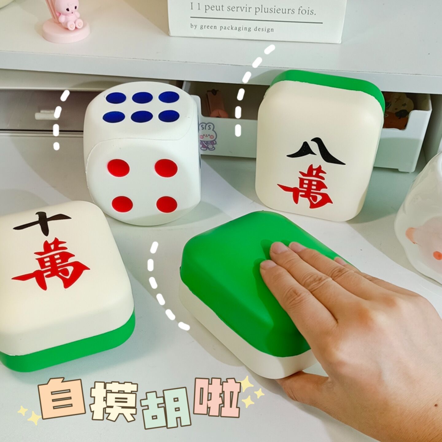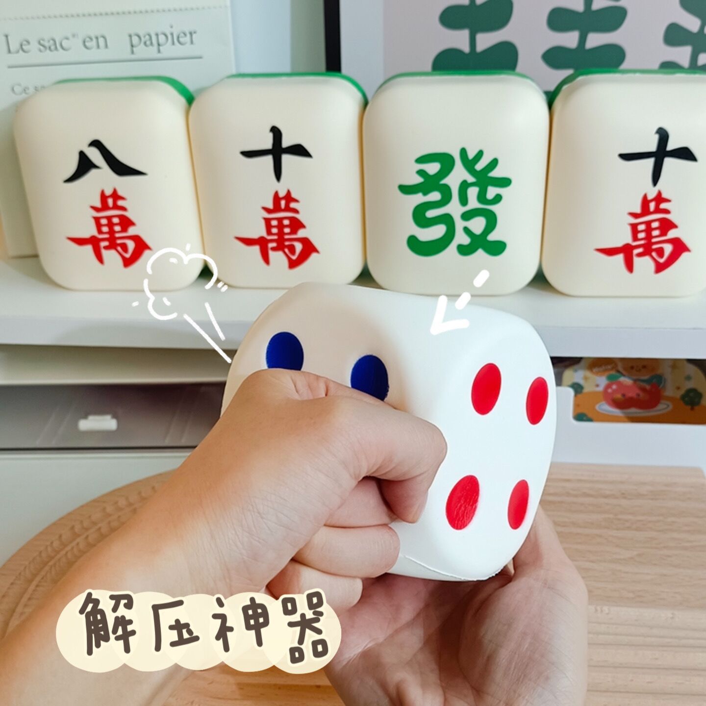 大号麻将发财骰子创意PU捏捏乐慢回弹解压按压玩具