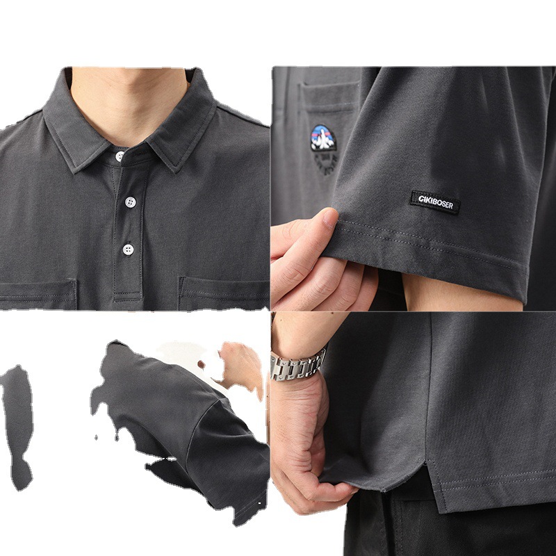 春夏季短袖T恤男士潮牌简约感Polo衫ins潮流工装风宽松半袖男