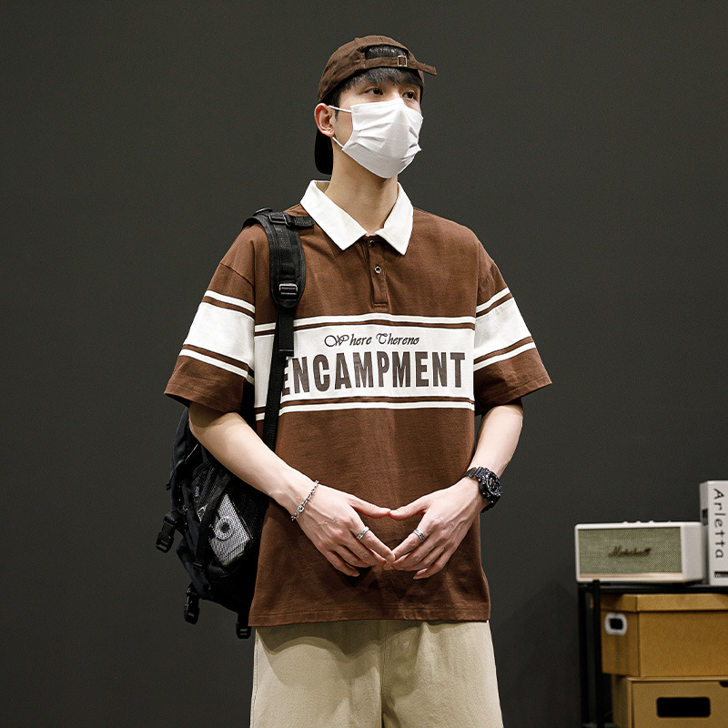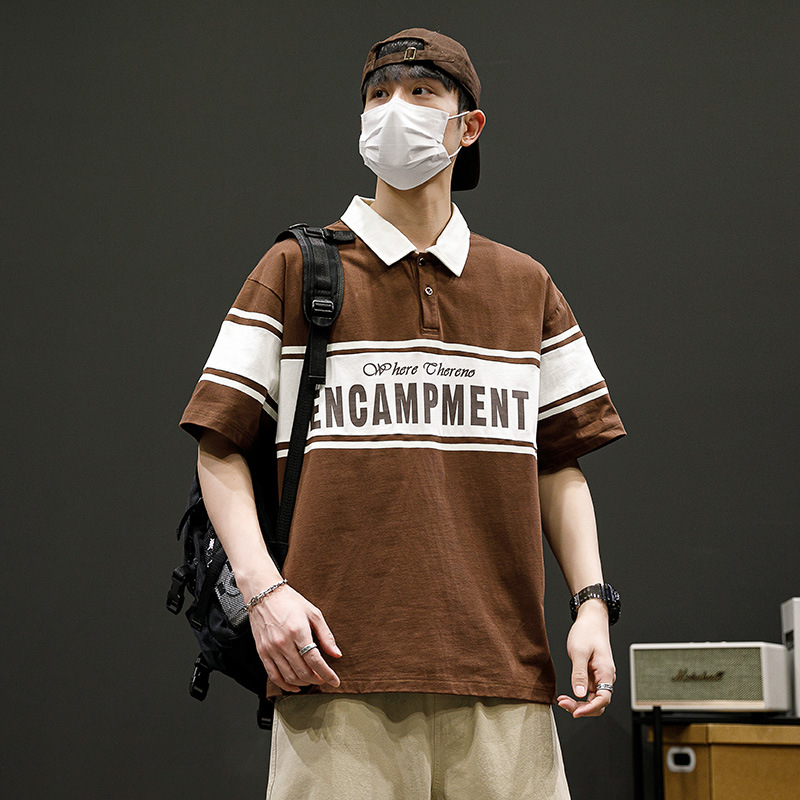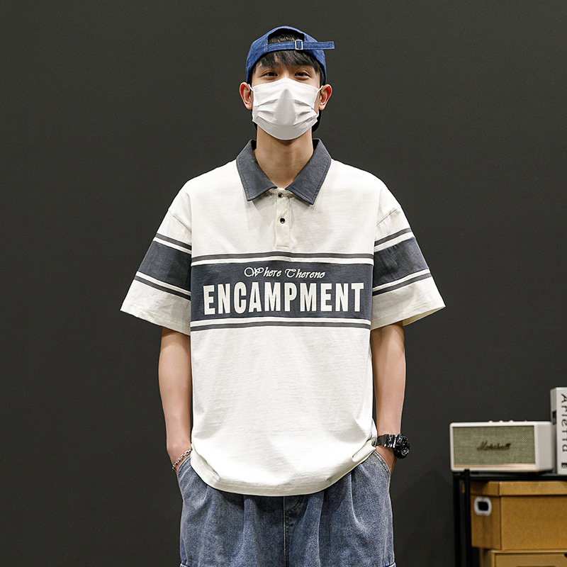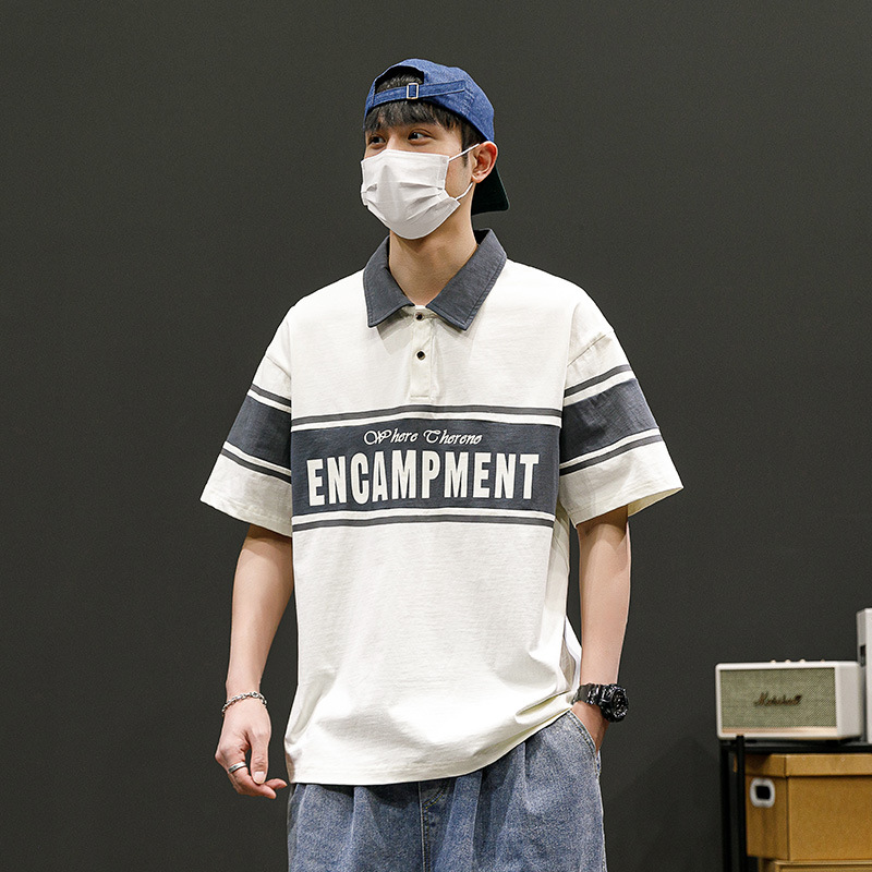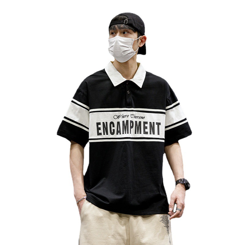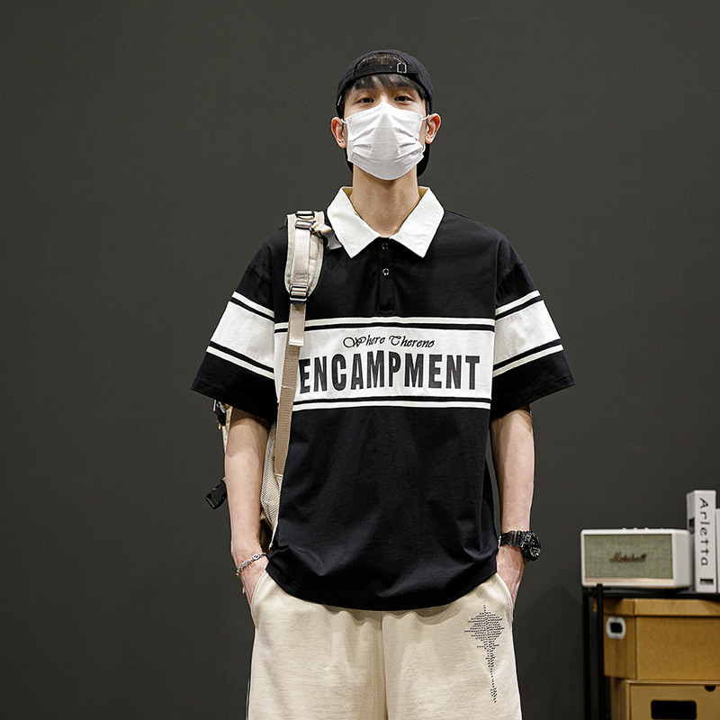 潮牌男士POLO衫翻领短袖T恤宽松潮流夏季半袖落肩袖男款休闲上衣
