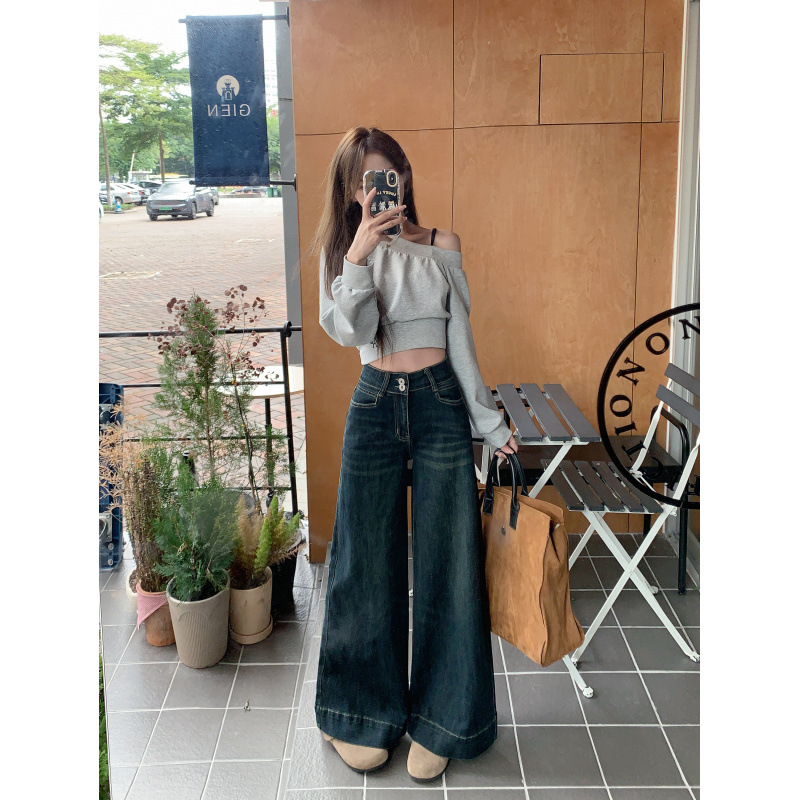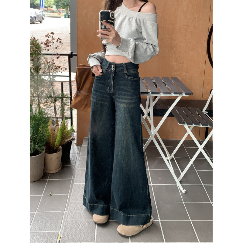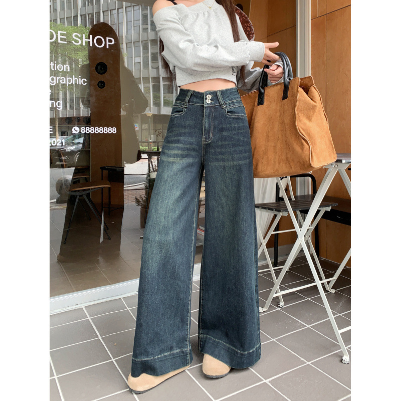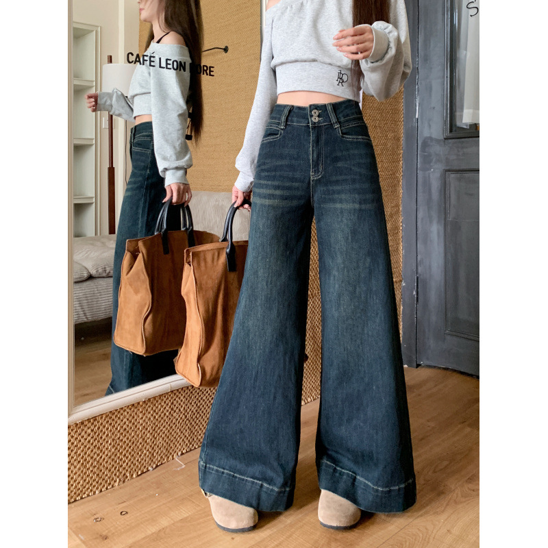 新款复古阔腿牛仔裤女百搭高腰显瘦宽松直筒长裤女