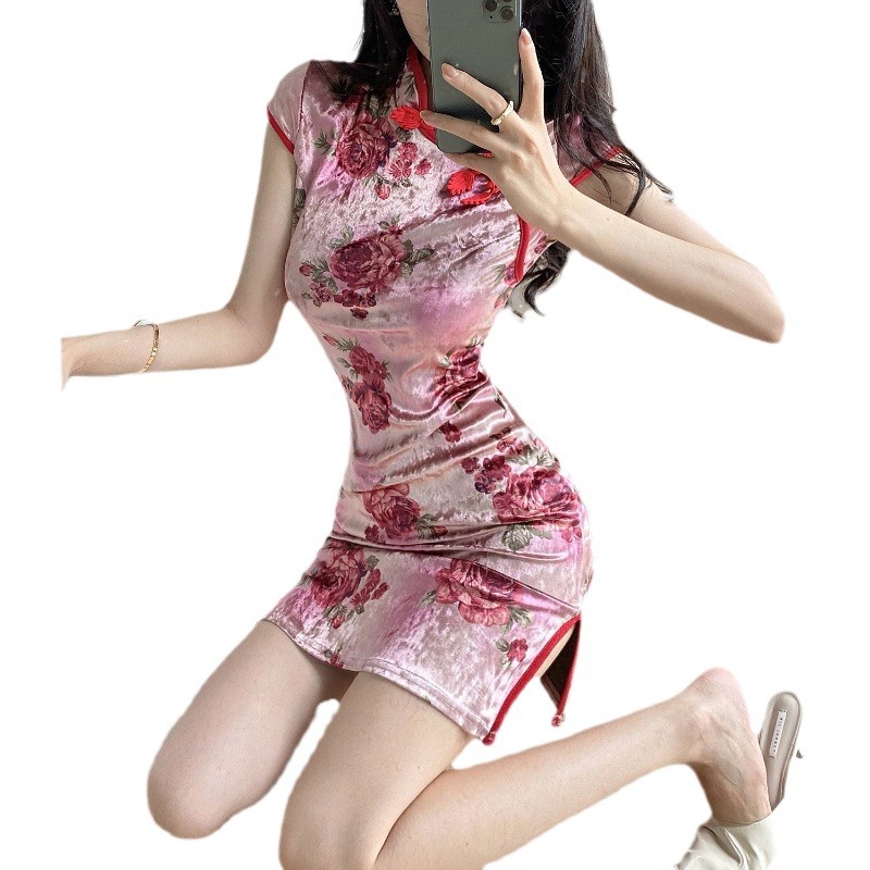 独特的花朵复古旗袍,上身很显瘦,显气质.