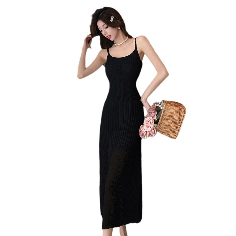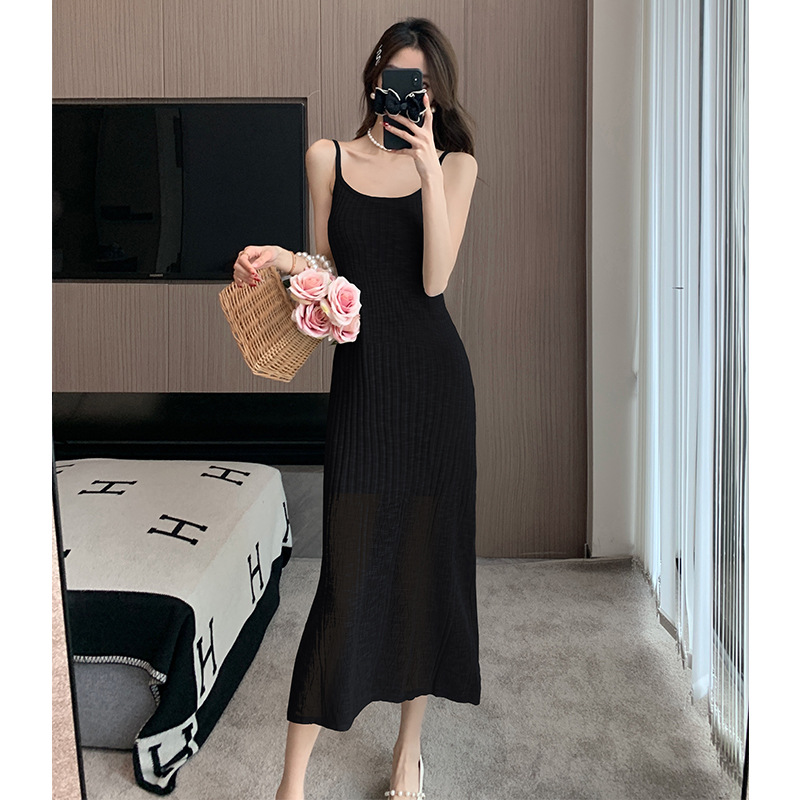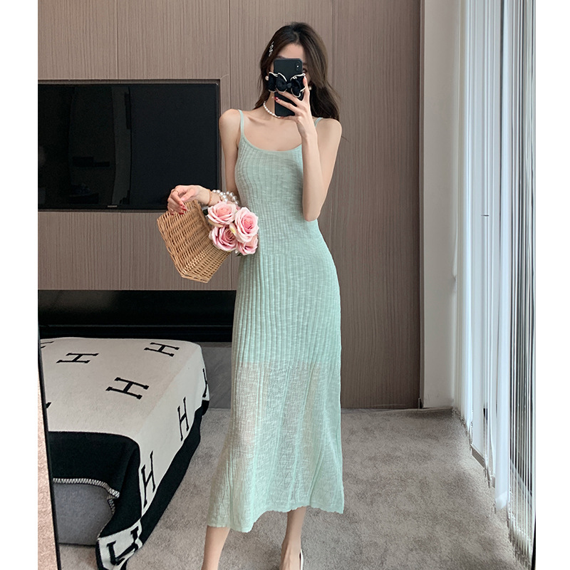 法式薄荷绿针织吊带连衣裙女春夏气质收腰显瘦包臀裙度假风裙